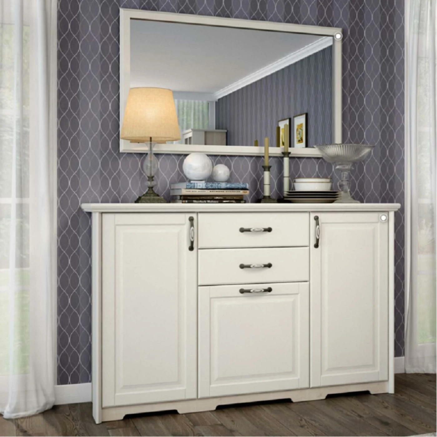 - Two-tone polar pine and ivory finishes