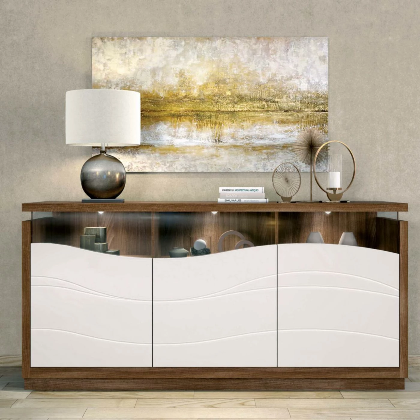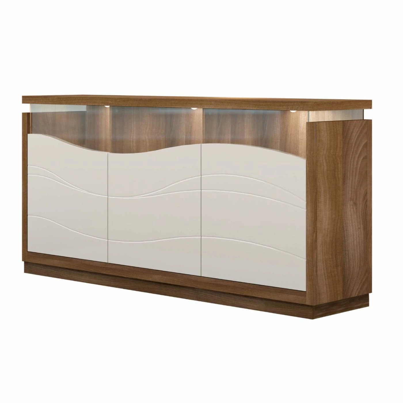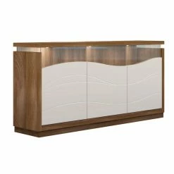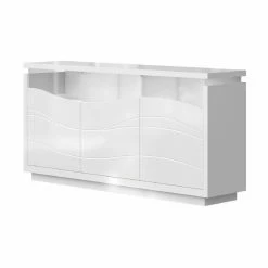 - Made with engineered wood with glass doors