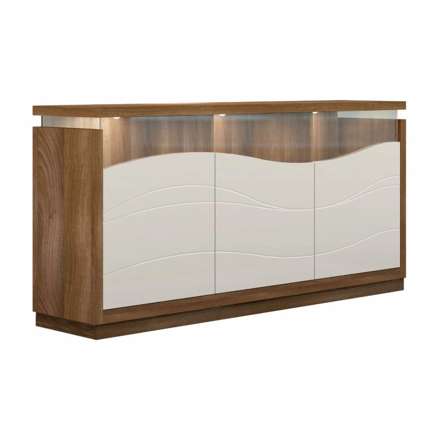 - LED lighting on top shelf