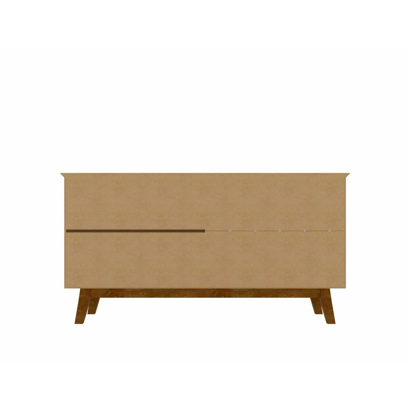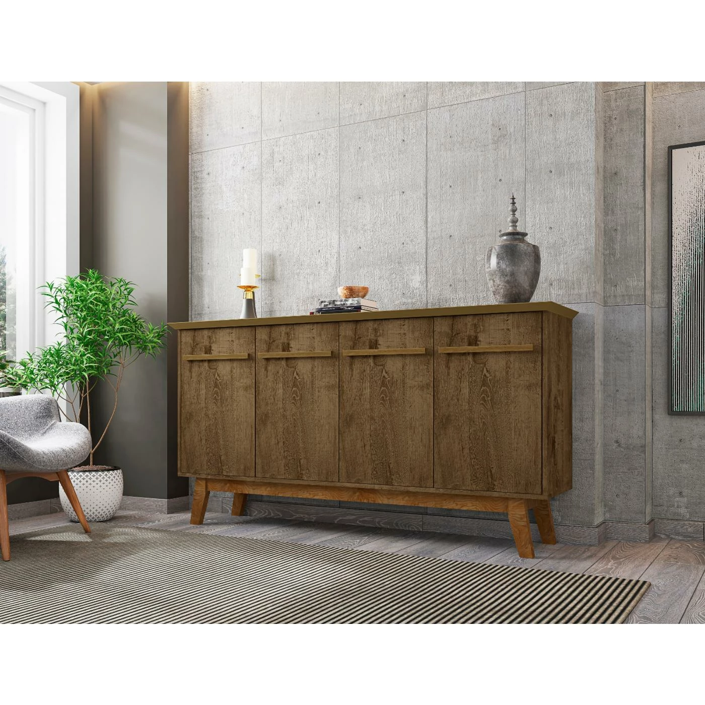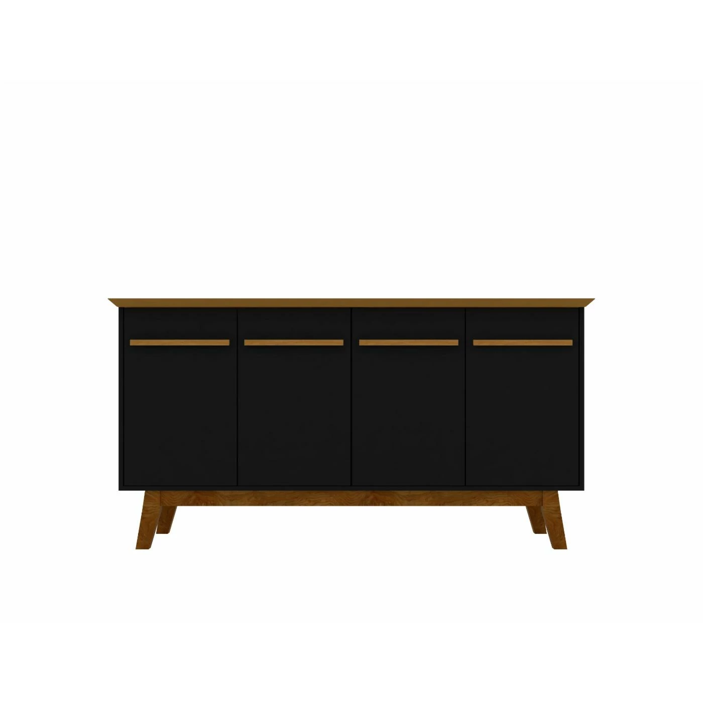 Update your dining area or living space and entertain in style, with the Yonkers sideboard that acts as a buffet and storage center, in the perfect blend of mid-century design and modern functionality. Cabinet style doors with a soft close feature offer ample space for tucking away dishes, tablecloths, and dinnerware to host ultimate dinner parties. Add candlesticks, framed photos, or a mail tray on its smooth base to personalize the piece and make it your own. Beautiful craftsmanship and intricate detailing shines, with durable splayed wood legs, beveled top, and sleek handles to finish.