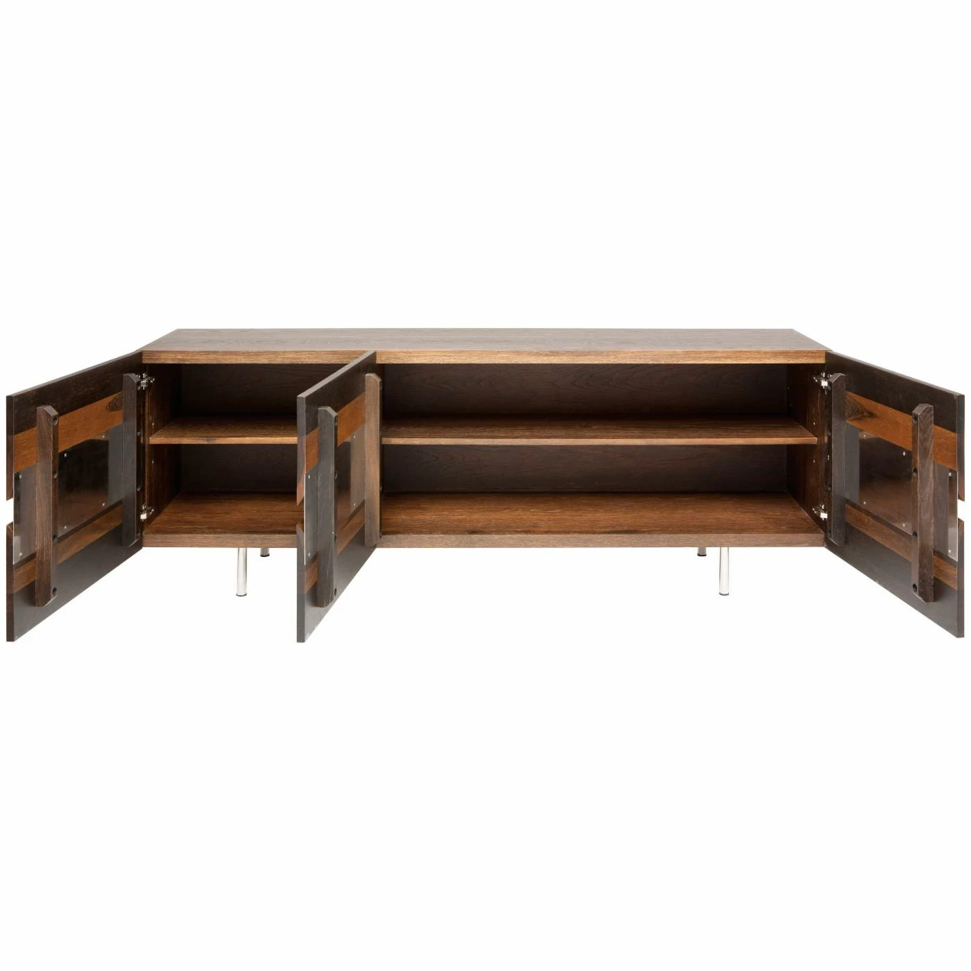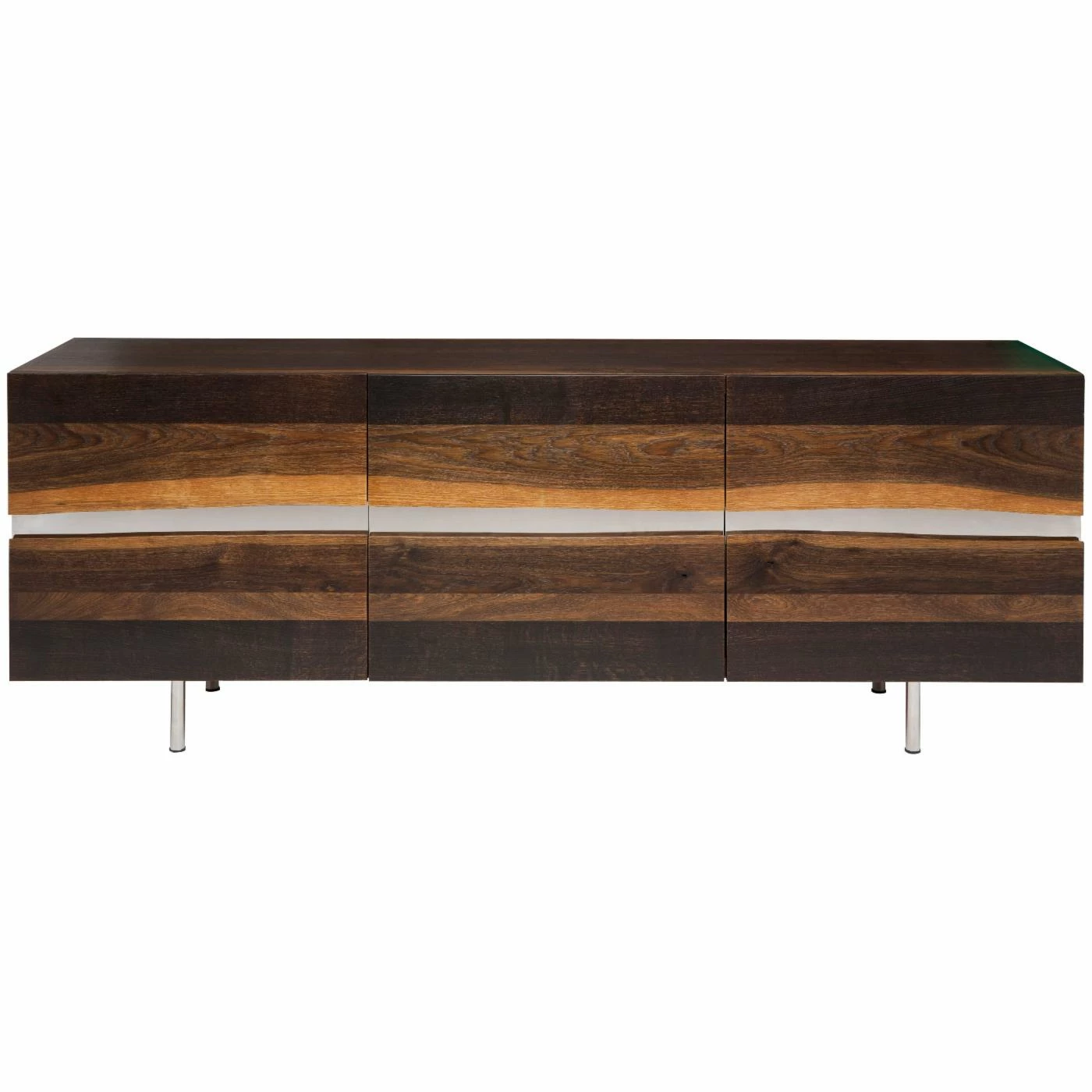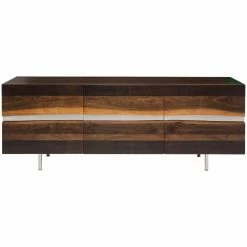 Enhance your entertaining prowess with the Nuevo Sorrento 63 in. Sideboard Cabinet. Available in a choice of finishes, this sideboard is styled with a natural live edge detail and stainless steel inlay. Perfect for showcasing your dΓ©cor items and collectibles, this sideboard offers ample space to store formal dinnerware, table linens, as well as other entertaining essentials. The industrial design of this piece is sure to add to flair to your space and provide countless design options.