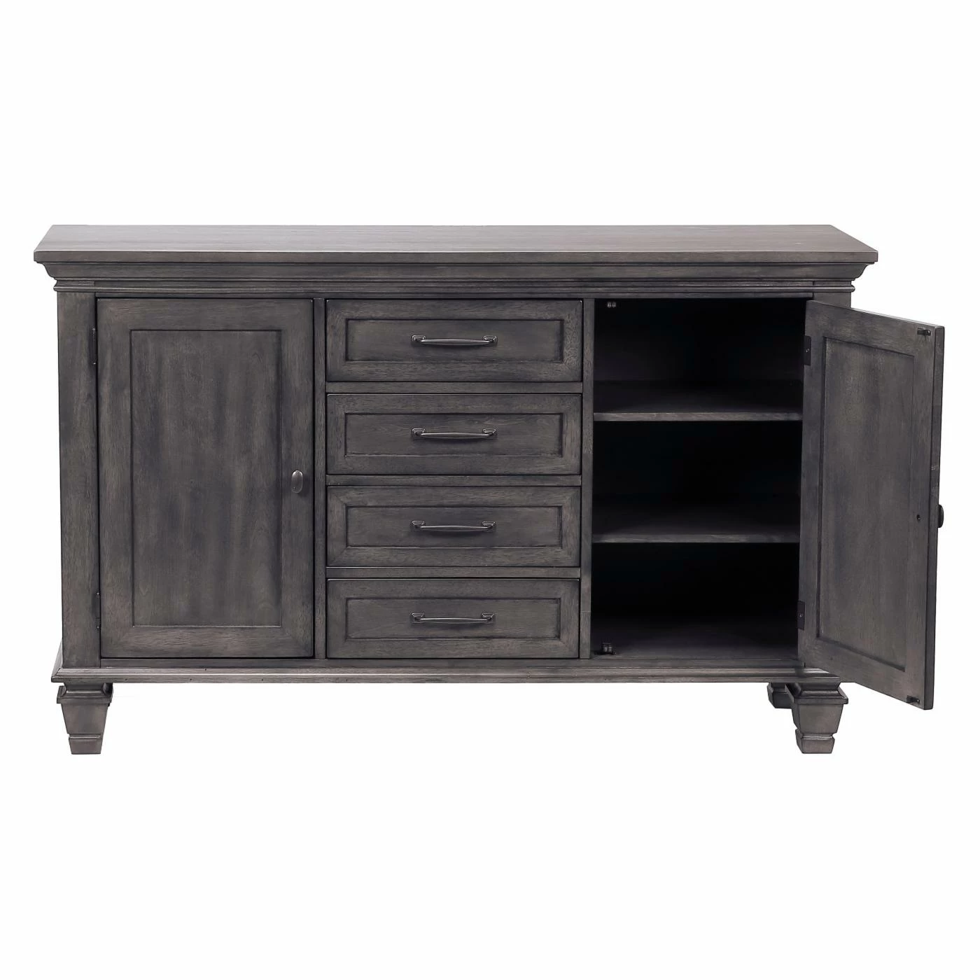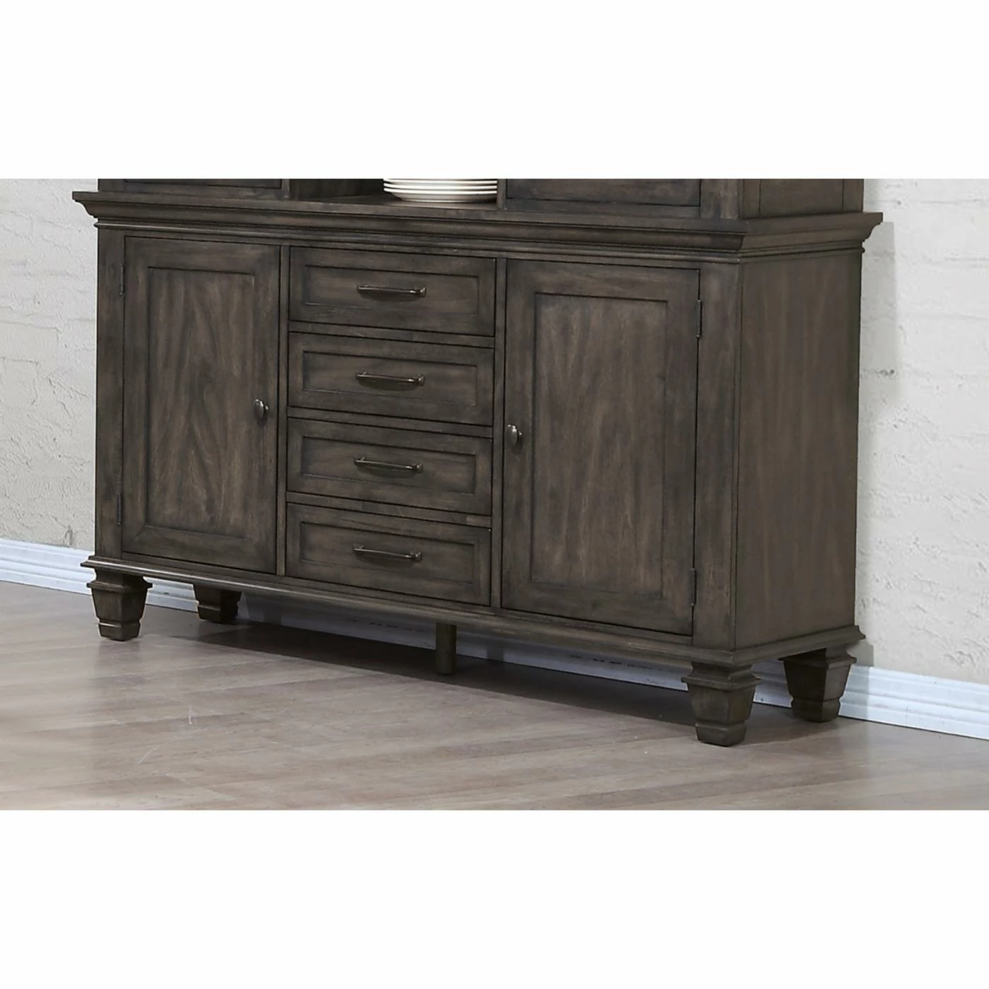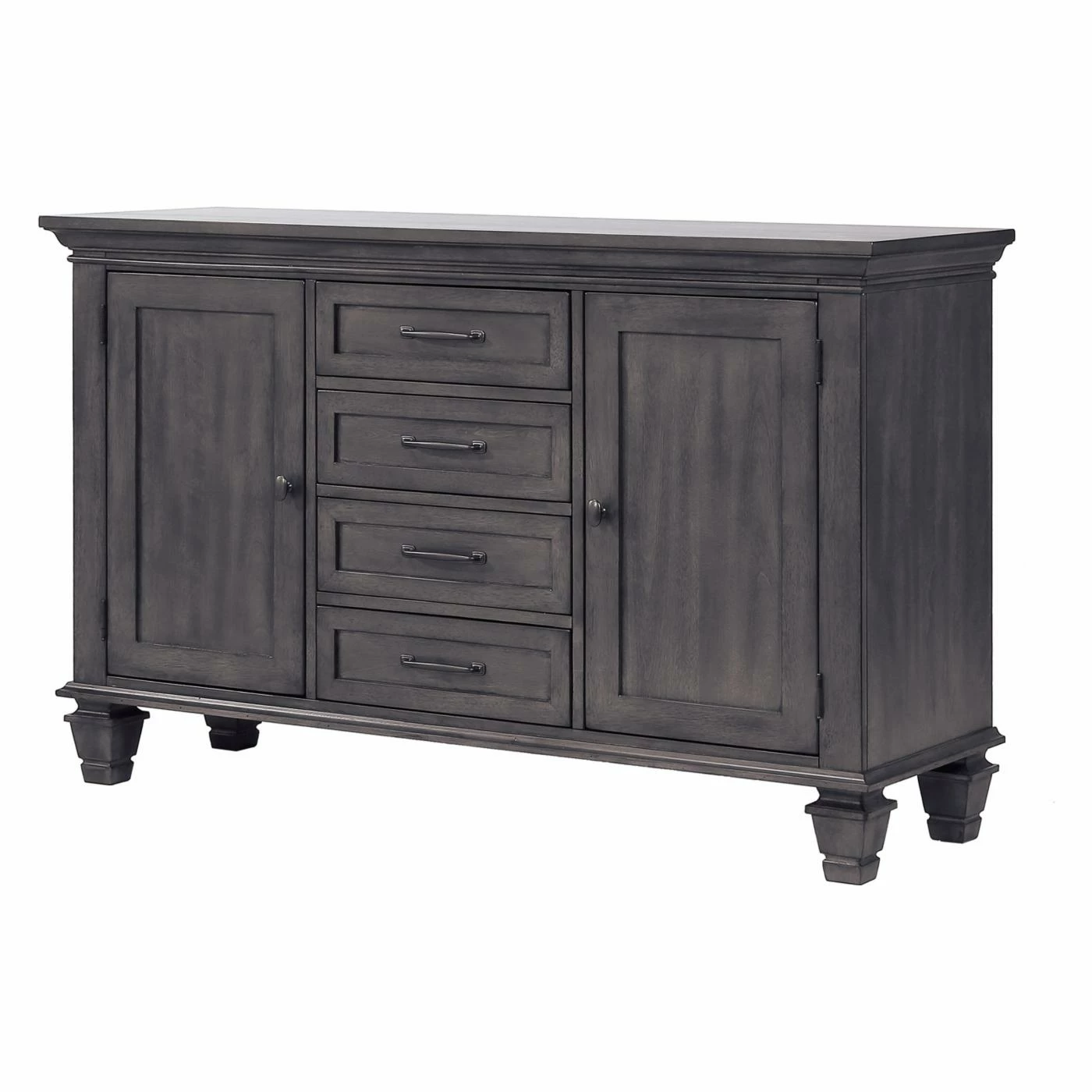 The Sunset Trading Shades of Gray Buffet does it all (and looks good while doing it). This buffet is rustic, traditional, and farmhouse in one. It can be used as storage in your kitchen, office, living room, or bedroom. It offers four felt-lined drawers and two storage cabinets, each with three adjustable shelves.