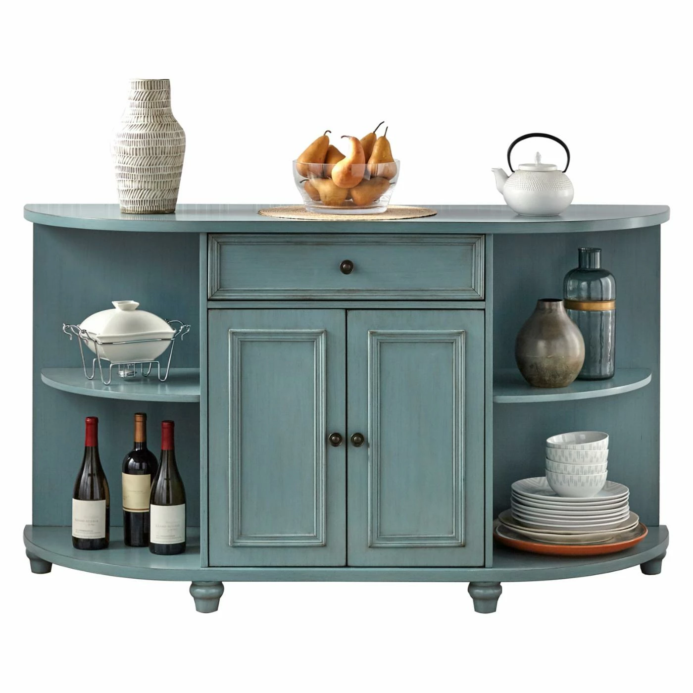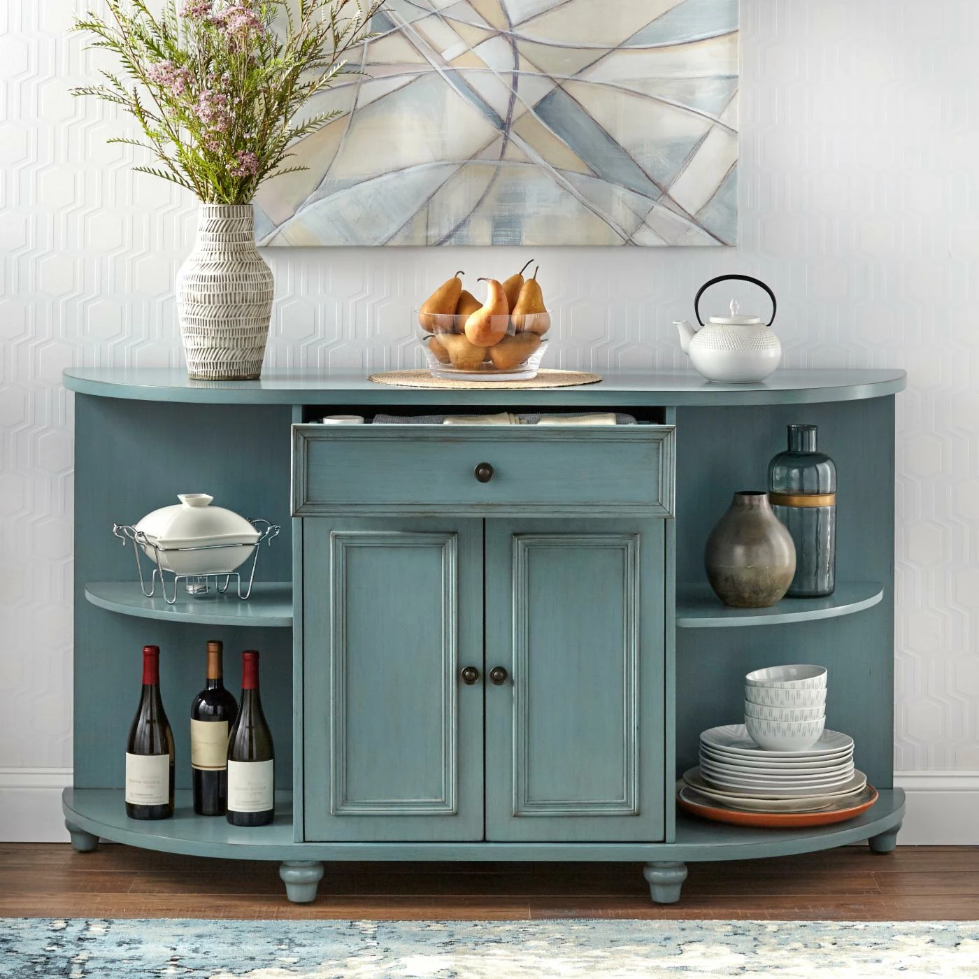 Keep all your kitchen or dining room essentials in one place with theΒ Target Marketing Systems Grace 2 Door Buffet – Antique Blue. From dishes and linens to stemware and cookbooks, you can find a place for everything you need. Use the four open corner shelves to display your favorite decorative items, and keep everything else tucked away in the drawer and cabinet.