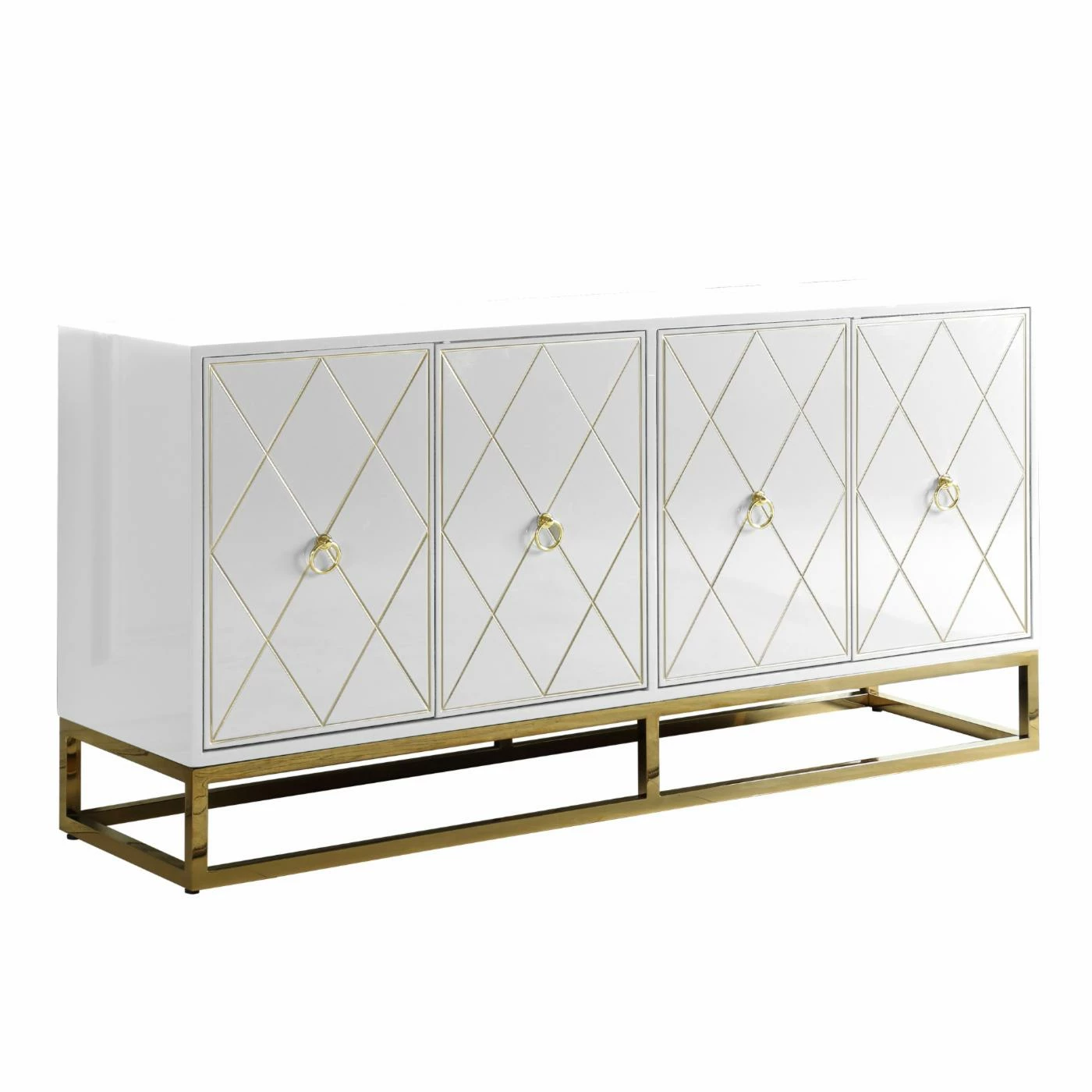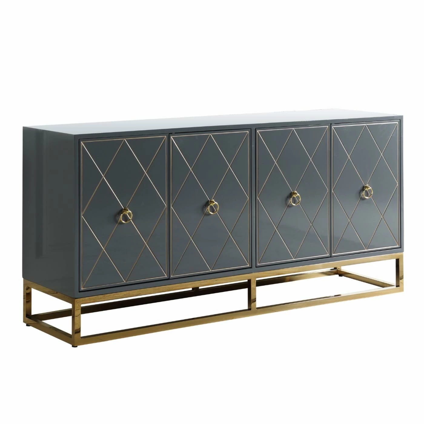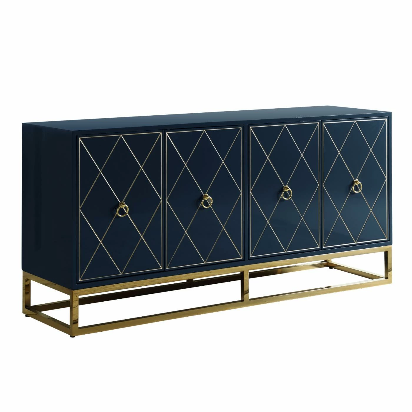 - High gloss lacquer finish with gold trim and base