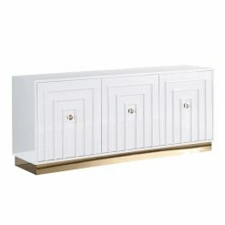 - Features 3 cabinets with interior shelving