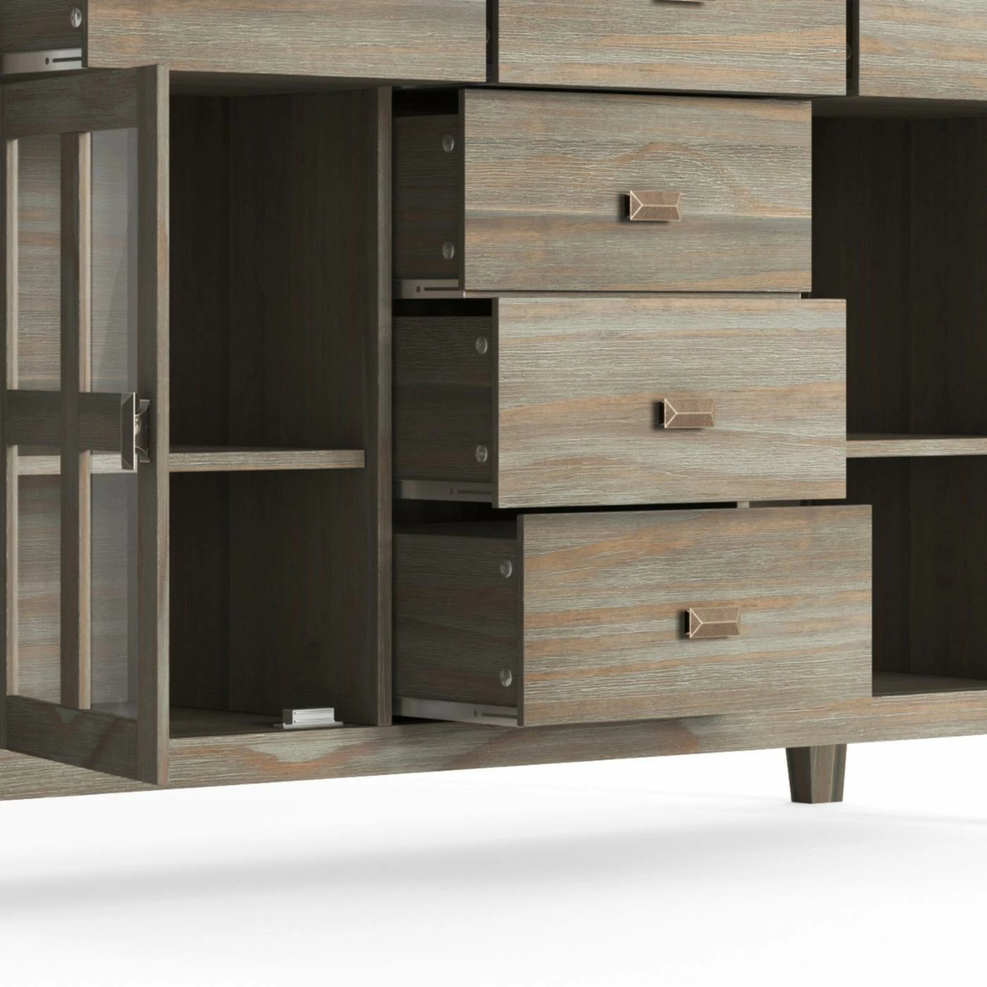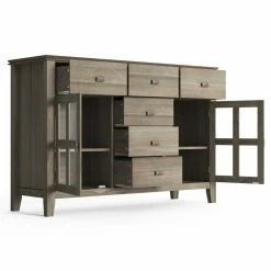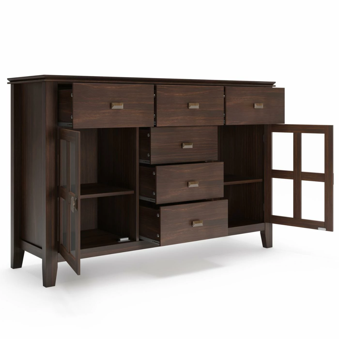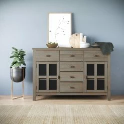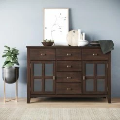 You’ll love keeping your dining essentials, china, and drinkware organized with the Booklyn + Max Holden Sideboard Buffet in your dining room. This functional, lovely piece features six drawers and two glass doors. The mullion framed glass doors each have a shelf behind them for enclosed storage. It sits on slightly tapered legs in your choice of finish that flatters any space.