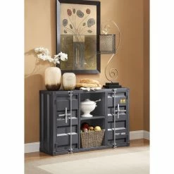 Experience industrial style with the Acme Furniture Cargo Dining Buffet Server. This server is inspired by an actual cargo container and features a full-length container lock. It has two doors and two open compartments for storage as well as a spacious top for display. Choose from available finish options.