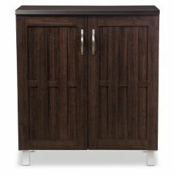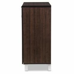 A slatted veneer front and handsome espresso finish give this Baxton Studio Excel Sideboard Storage Cabinet its craftsman appeal. Silver handles and sleek silver legs add a contemporary flair. This sideboard is perfect for your entryway or dining room. Its double doors open to reveal one shelf and two levels of storage.