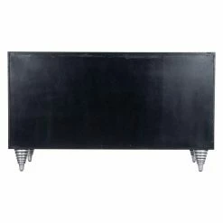 Decorate the top of the Butler Specialty Shelly Leather and Capiz Shell Inlay Sideboard and store seasonal items or extra dishes on the two interior shelves. The feet have a unique coiled design that matches the capiz shell pattern on the front of the three click-open cabinet doors. This sideboard is constructed from gmelina solids, engineered wood, leather, and maple veneer. The rich maple finish of the frame allows the bright silver and off-white color of the doors to stand out.