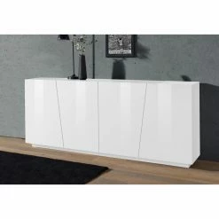 The Furniture.Agency Vega 4 Door Sideboard features a sleek, modern design. Made in Italy, this engineered wood sideboard is in a glossy white finish. Four doors with angled edges open to reveal two cabinets with a shelf in each. Use this sideboard in your dining room to store extra linens and serve guests, or style it in your living room for additional storage. With its clean lines and neutral finish, this sideboard complements a variety of home dΓ©cor styles and color schemes.