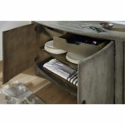 - Two drawers behind center doors