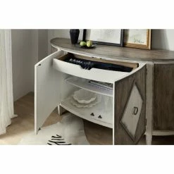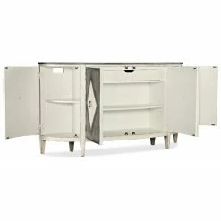 - One adjustable wood shelf behind each left;right doors;one adjustable shelf behind center doors