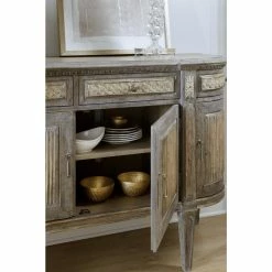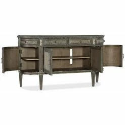 - Pair of center doors has one adjustable wood shelf behind the pair