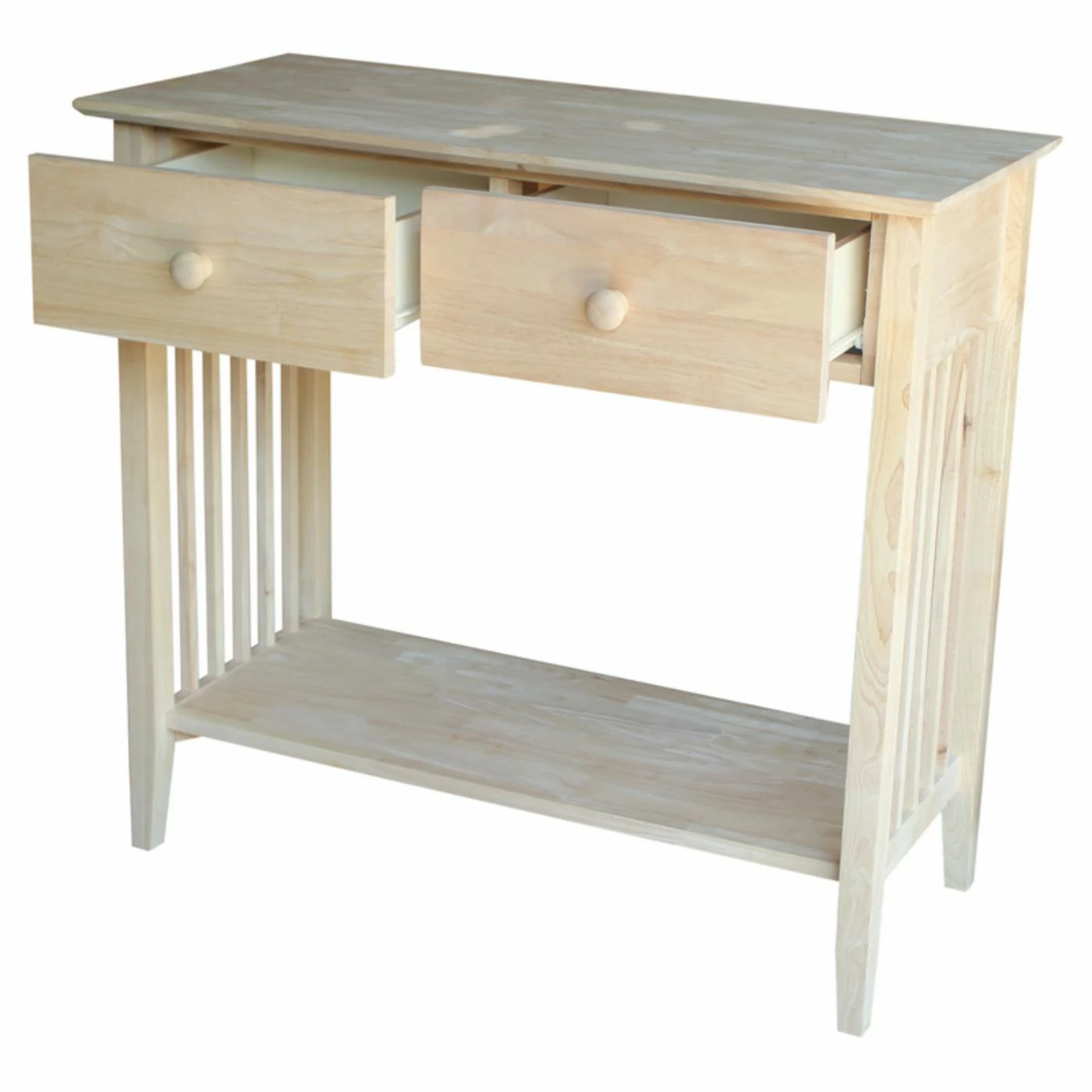 Where most Mission-style furniture is going to be weighed down by heavy oak that’s even heavier with dark stains and finishes, the International Concepts Mission Server gives you those clean, architectural lines with the versatile look of unfinished parawood. A pair of pull-out drawers slide smoothly from beneath a wide top, all over a lower shelf flanked by square-spindled sides. Parawood, also known as rubberwood, has a natural, unfinished look that shows off the inherent beauty of the material and a medium-density body that makes it ideal for furniture construction.