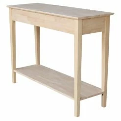 The lines may be old school, but the unfinished exterior of the International Concepts Spencer Server lets you get a good look at why parawood is becoming so desirable in today’s furniture. The tight, showy grain and medium density make it tough enough for everyday use, but still chic enough for modern spaces. This server features a butcher-block top above a pair of pull-out drawers supported by long, slender legs. A lower shelf adds stability and an extra touch of storage on this desirable and functional piece. Minor assembly is required.