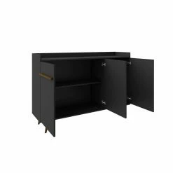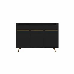 A lesson in design and entertaining, the Bradley buffet sideboard takes your dining or living space to the next level turning you into the hostess with the chicest style. Create the dinner party youβve always wanted, with easy functional storage and concealed areas perfect for tucking away dishes, linens, and stemware. Durable splayed legs and expert craftsmanship offer a classic Mid-Century aesthetic and keep this piece feeling trendy and timeless all at once. Transform it by creating a bar area up top, or use it to display candlesticks, fresh flowers, refreshments, or framed family photos.