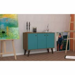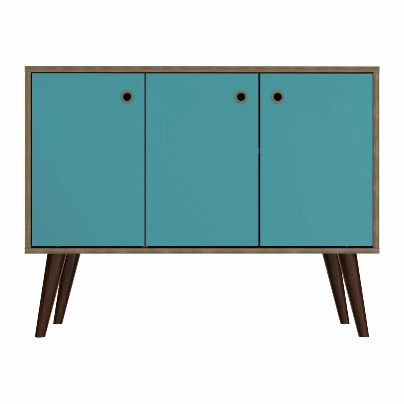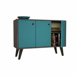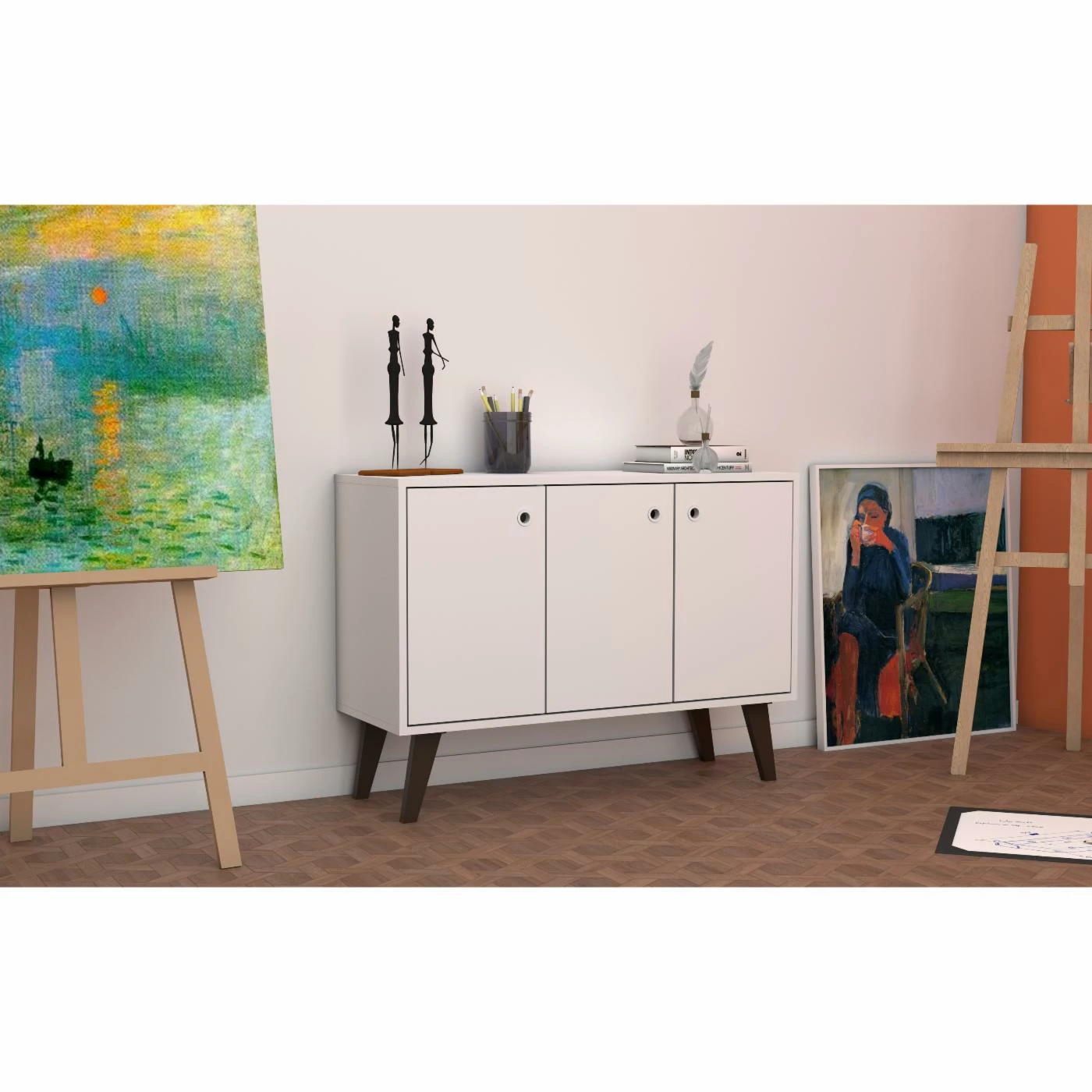 Organize your space with the Manhattan Comfort Bromma Mid-Century/Modern Dining Sideboard. This black and white piece has two shelves and one large compartment for storage. The sideboard is extremely versatile and can be used to store dining pieces, as a TV stand, or for a craft room.