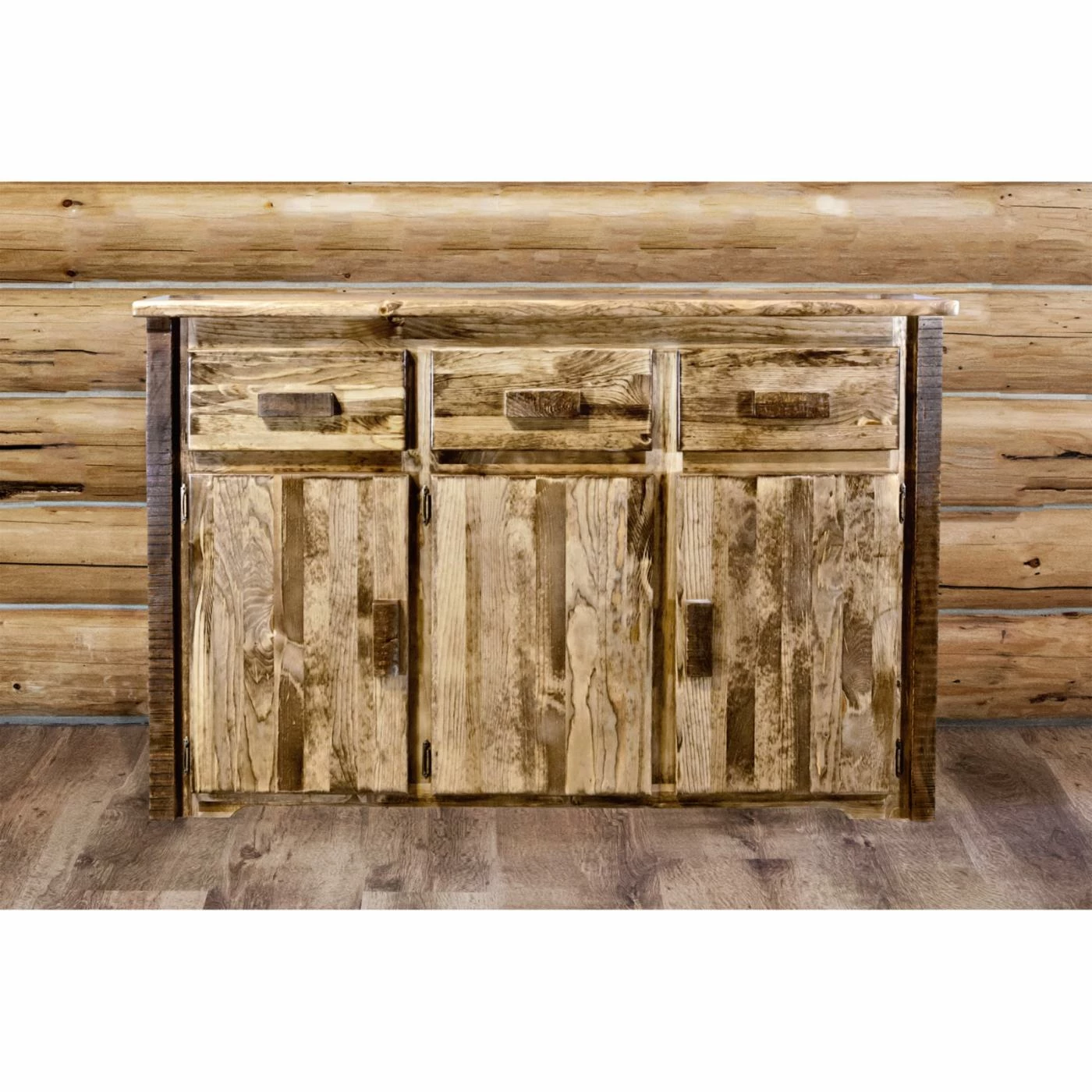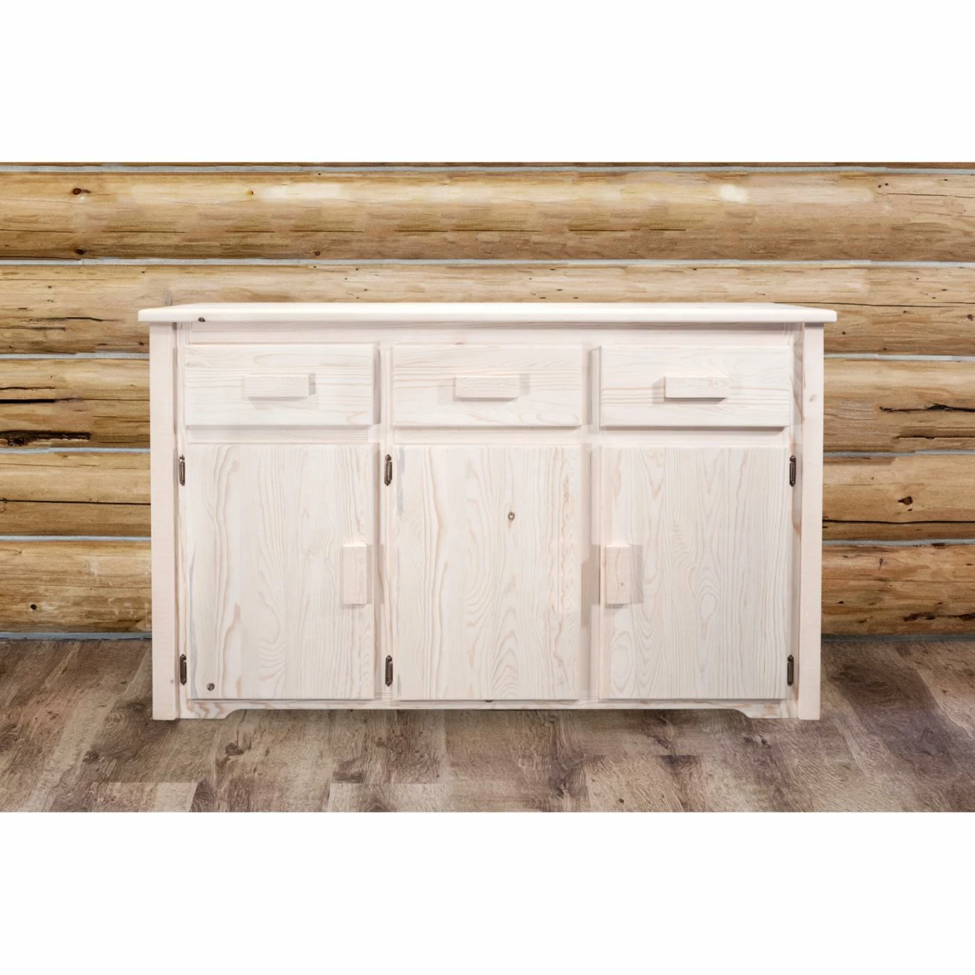 Brimming with rustic beauty and functionality, the Montana Woodworks Homestead Sideboard brings a barn wood-inspired design to your dΓ©cor. Expertly handcrafted from square-sawn lodge pole pine wood, this sideboard comes in your choice of available finish that’s been applied in a multi-step process for long-lasting, low-maintenance durability. Featuring three drawers and three closed cabinets with raised-panel doors and a fixed shelf interior, this heirloom-quality piece lends rugged charm, solid construction, and valuable storage space to your home.