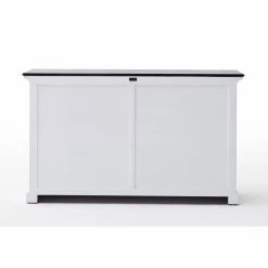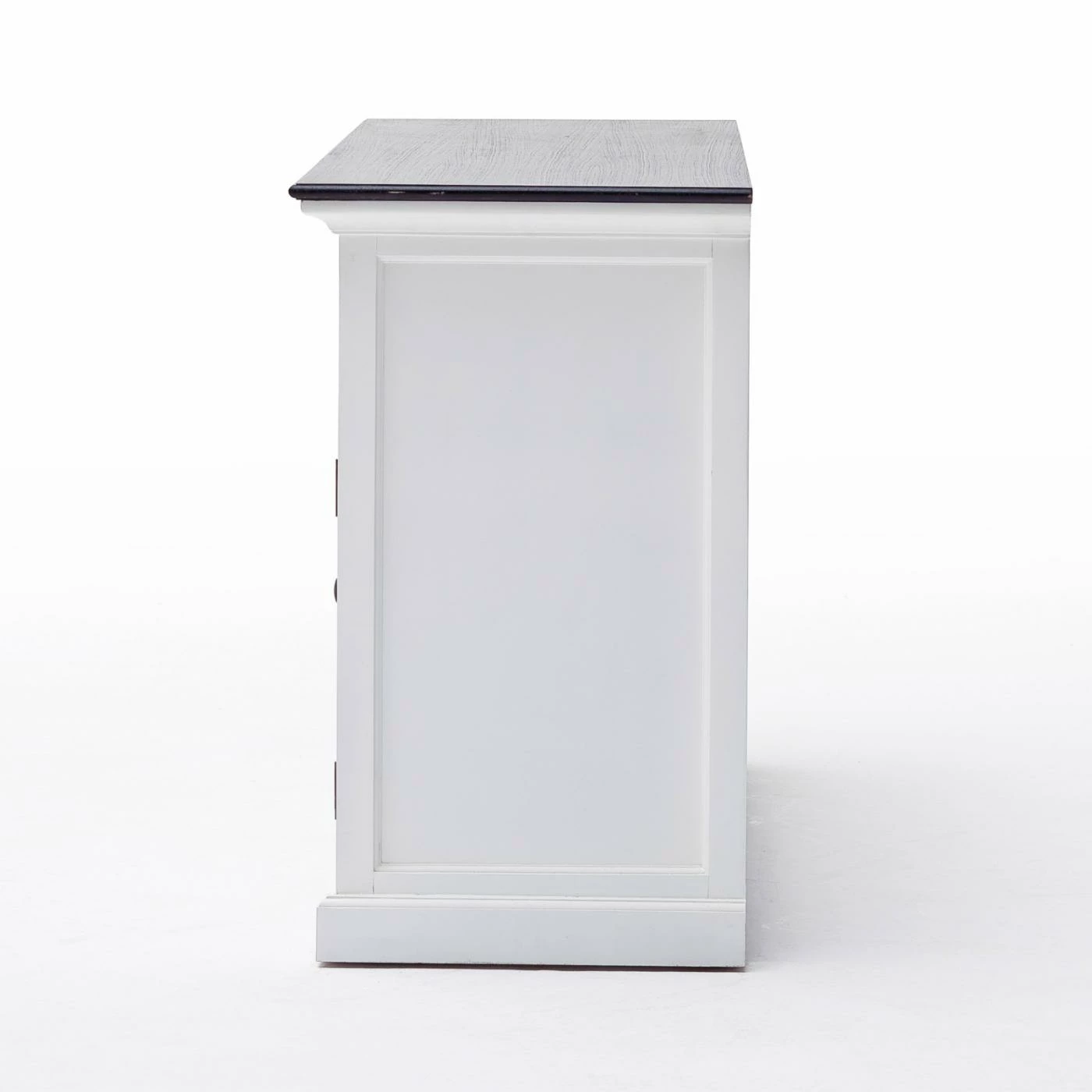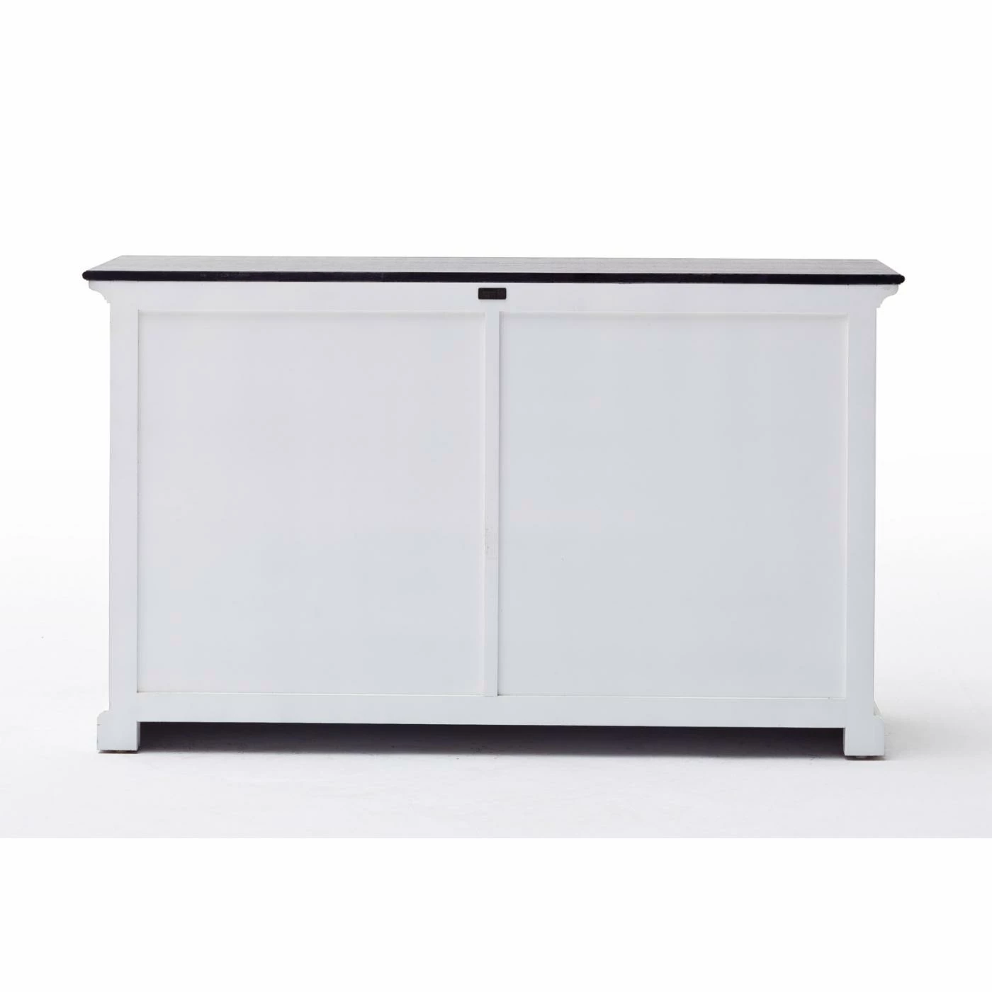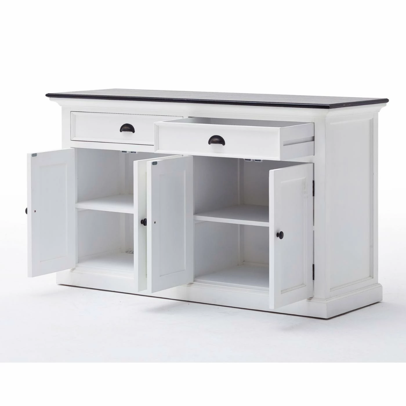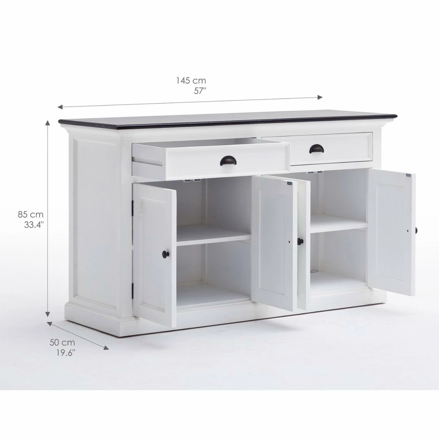 With two spacious cupboards and two generous drawers, the Nova Solo Halifax Contrast 4 Door Buffet can help you get any space in order. Crafted from kiln dried mahogany and engineered wood, this buffet has a crisp white finish with contrasting black top, antique brass hardware, and bevelled accents. Each cabinet contains a shelf to keep you organized.