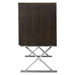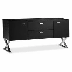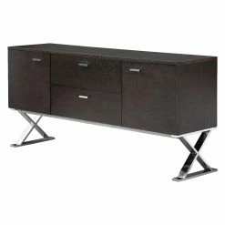 Elegantly elevated on highly polished steel, X-shaped legs, the Pangea Home Mason Dining Buffet makes a modern statement in your home. This chic dining buffet boasts a wood veneer construction in your choice of available finish to blend easily with your existing dΓ©cor. Efficiently designed with plenty of storage and sleek, easy-grip hardware, it includes two pull-out drawers and two cabinets with a single interior shelf in each. Lend focal-point style to your space with this distinctive piece of furniture that’s as fashionable as it is functional.