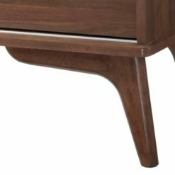 With a spacious top and storage, the Picket House Furnishings Rosie Buffet is a wallflower that will stand out in the dining room. This sleek sideboard is crafted with rubberwood solids and veneers strengthened by engineered wood and finished in a warm walnut hue. The squared body rests on flared mid-century modern legs. On one side, three storage drawers fully extend on smooth glides, while integrated drawer stoppers control movement. Each of the drawers and doors that open to two cabinet spaces for bulky serving pieces, boasts subtly carved handles that are as aesthetic as they are useful. Assembly is required, and a limited one-year manufacturer’s warranty is included.