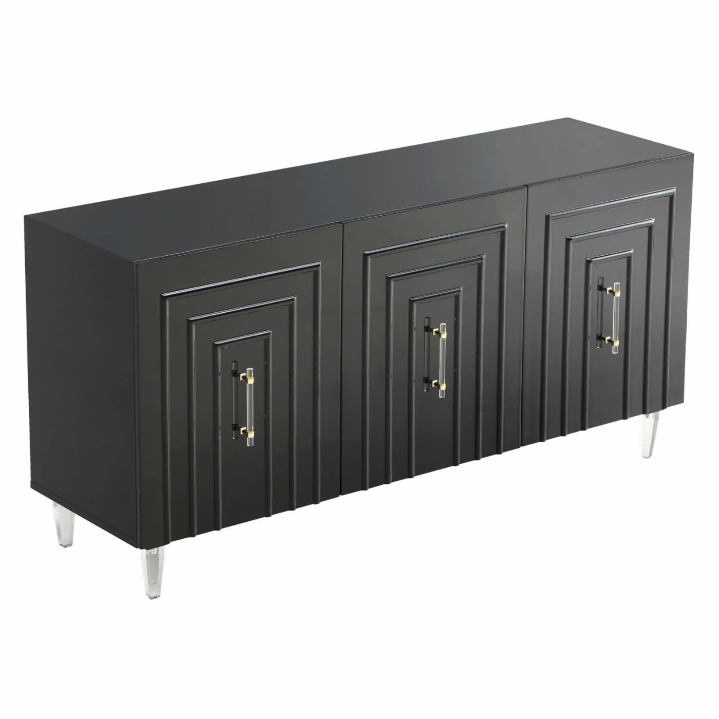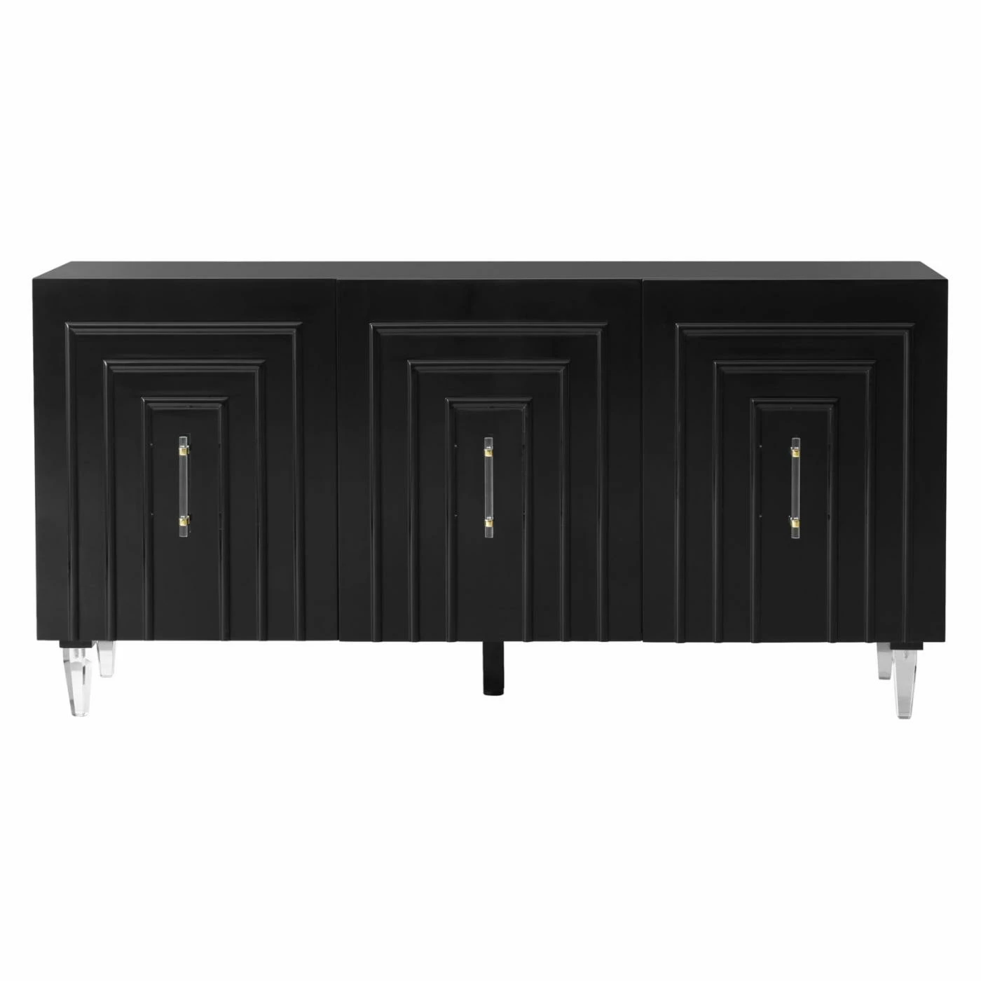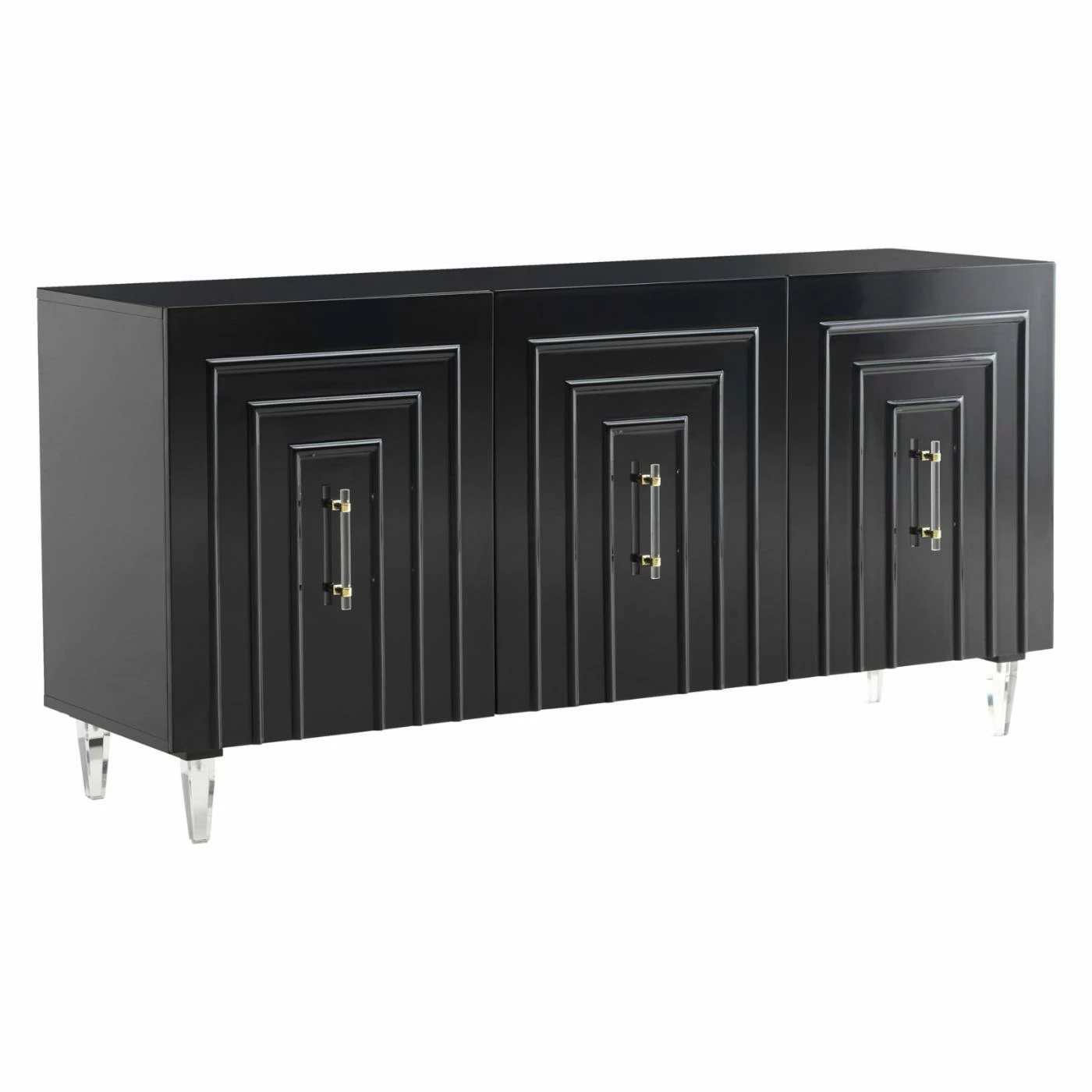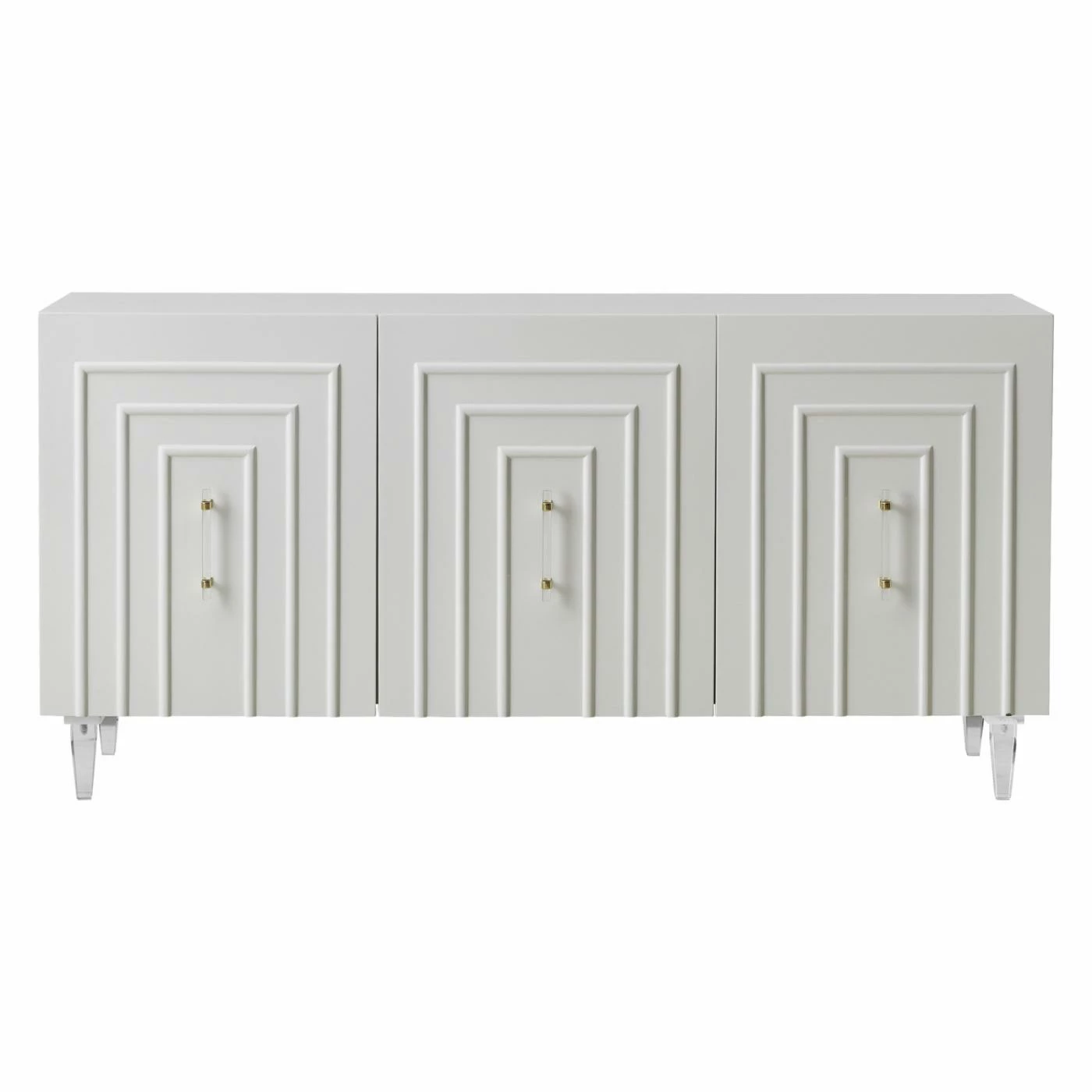 Make your space functional, stylish, and glam with the TOV Furniture Famke Lacquer Buffet. This handmade piece features MDF wood with a lacquer finish in your choice of color. It features geometric molding on the door fronts as well as acrylic legs and cabinet handles. Three soft-close doors are included in addition to six adjustable shelves for convenient storage.