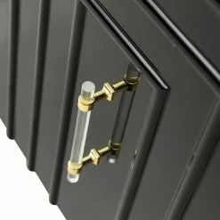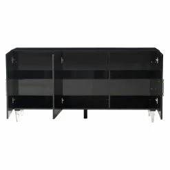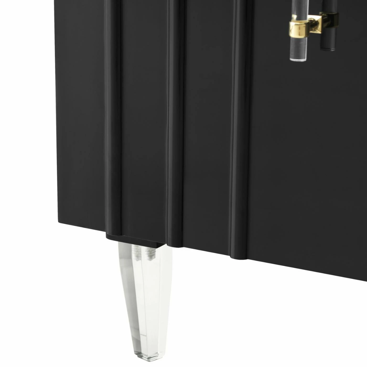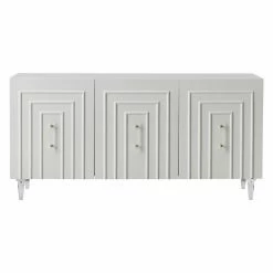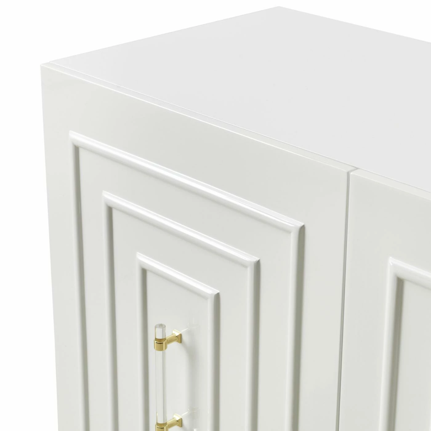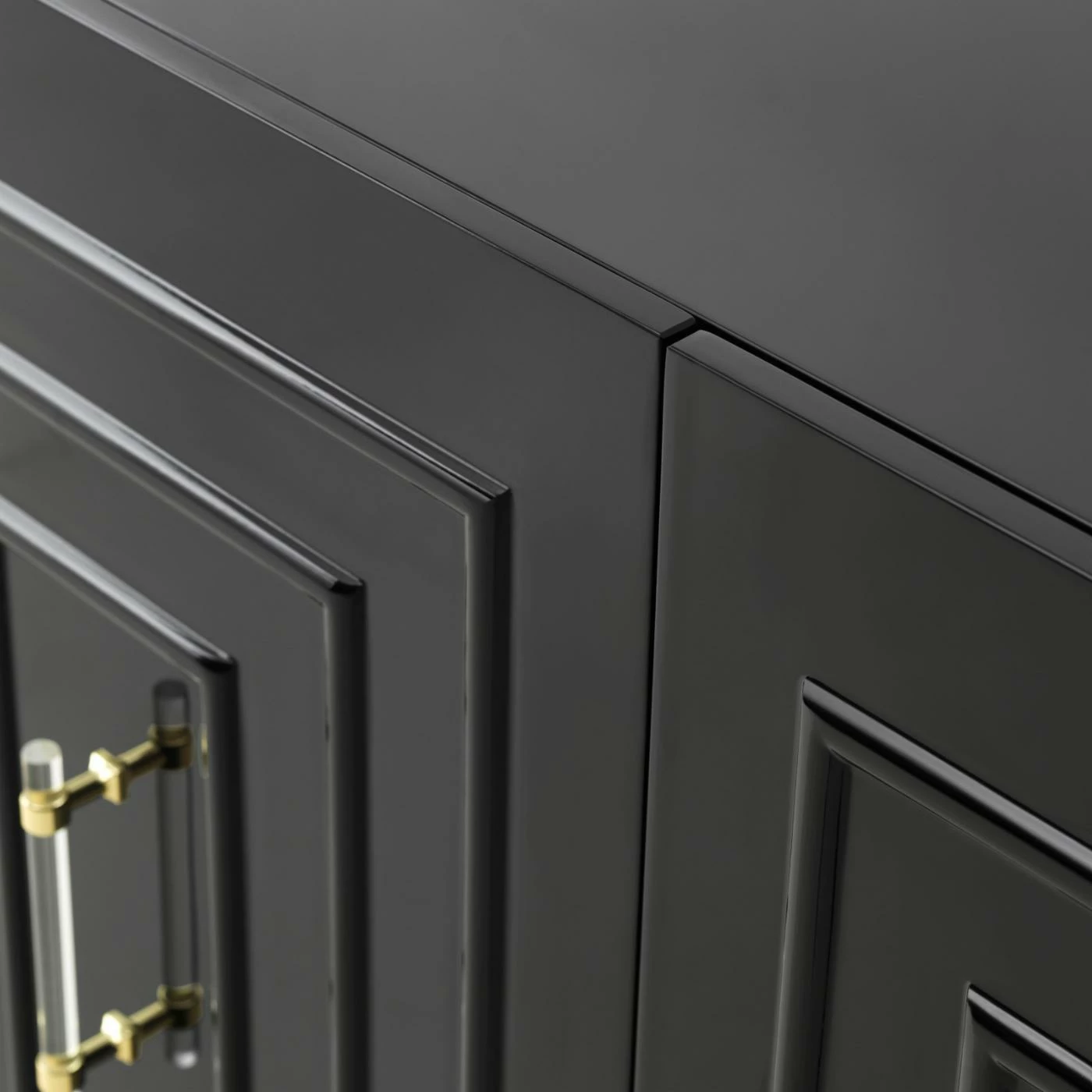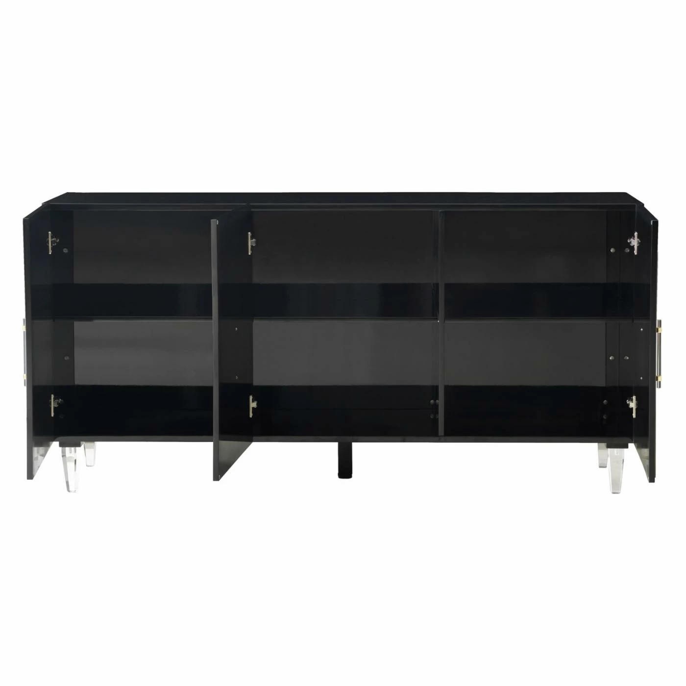 Make your space functional, stylish, and glam with the TOV Furniture Famke Lacquer Buffet. This handmade piece features MDF wood with a lacquer finish in your choice of color. It features geometric molding on the door fronts as well as acrylic legs and cabinet handles. Three soft-close doors are included in addition to six adjustable shelves for convenient storage.