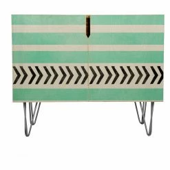Modern design has come a long way, and that’s all plain to see with the Deny Designs Allyson Johnson Mint Stripes and Arrows Credenza. This charming credenza features an original design from Allyson Johnson that’s printed to the surface and sealed beneath a thick, high-gloss finish that both highlights and protects the work. The cabinet is crafted from premium Baltic Birch that rests on a pair of metal hairpin legs. Behind those handle-less doors you get a roomy interior with a fixed shelf and a matching print at the back of the cabinet.