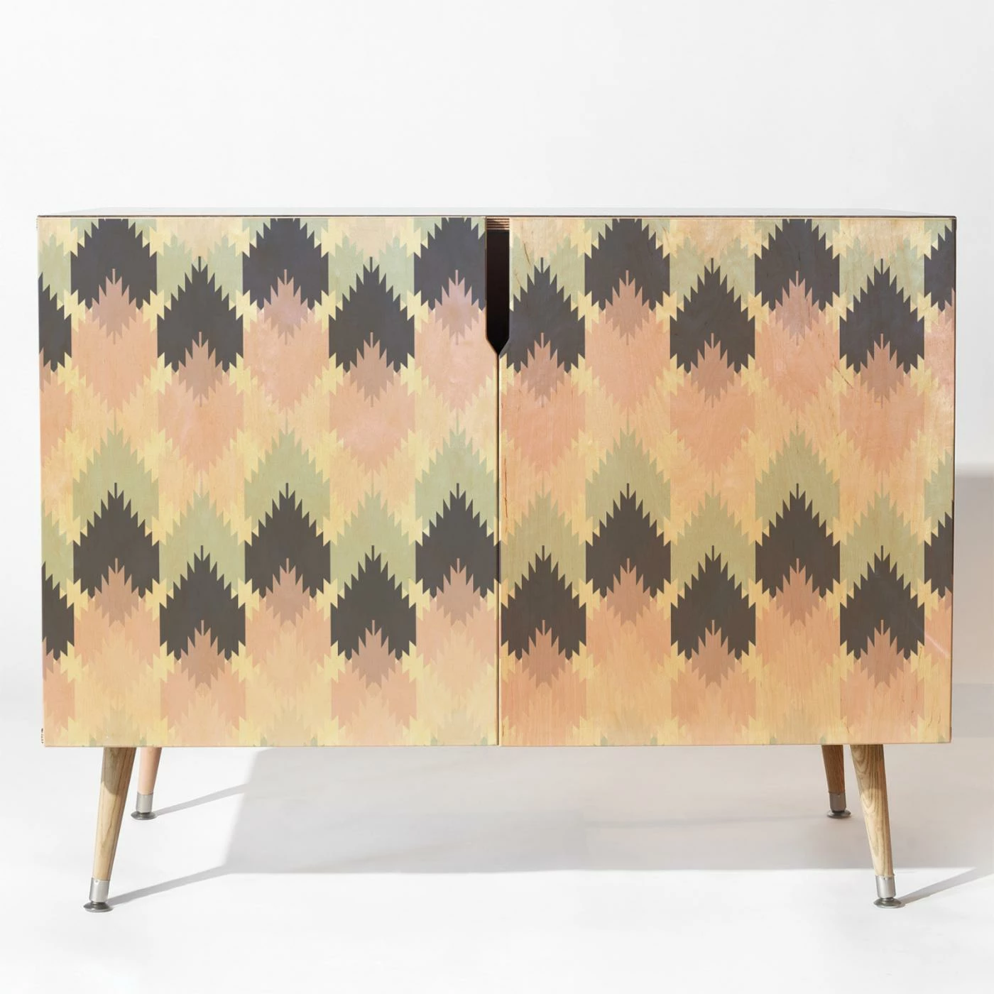 The Deny Designs Craftbelly Spring Kilim Credenza boasts global flair with a kilim pattern in soft shades of pink, blue, and gray. This uniquely designed credenza includes your choice of available leg style to get the perfect look in any room. Baltic birch construction promises durability and easy-care with a wipe down from a non-abrasive cloth.