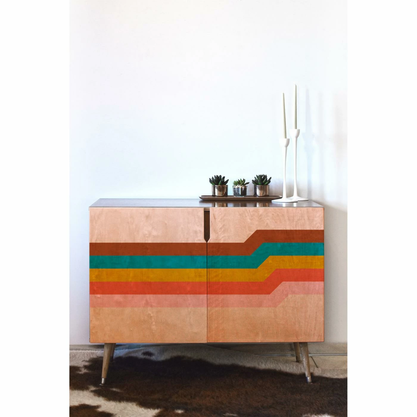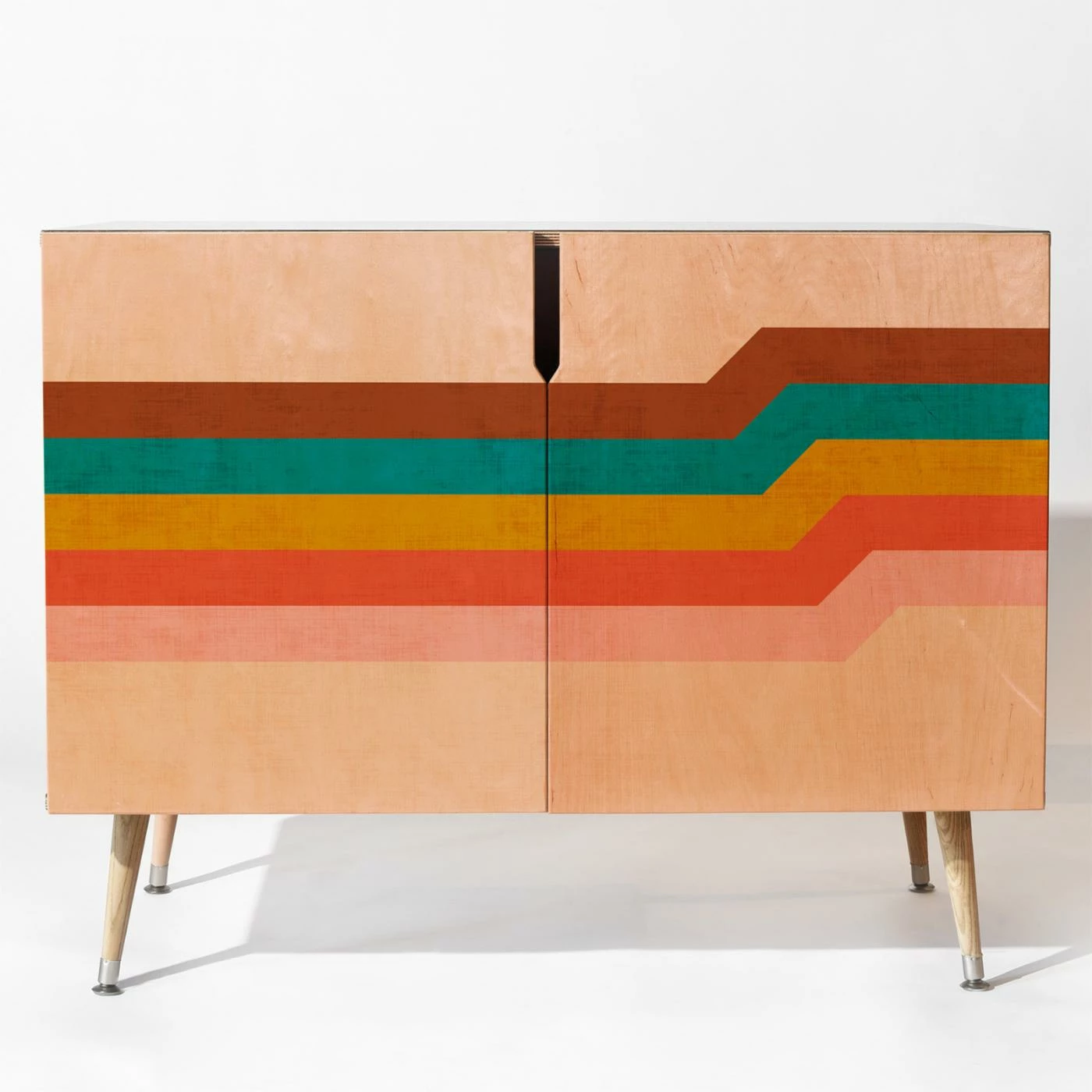 Lend a burst of bright color to any room with the Deny Designs Holli Zollinger Aazura Credenza, enhanced with a rainbow-colored horizontal stripe design. This vibrant credenza is crafted from Baltic birch and is easy to care for with a wipe down from a non-abrasive cloth. Use it in your living room or hallway, and select your preferred available leg style for the perfect look.