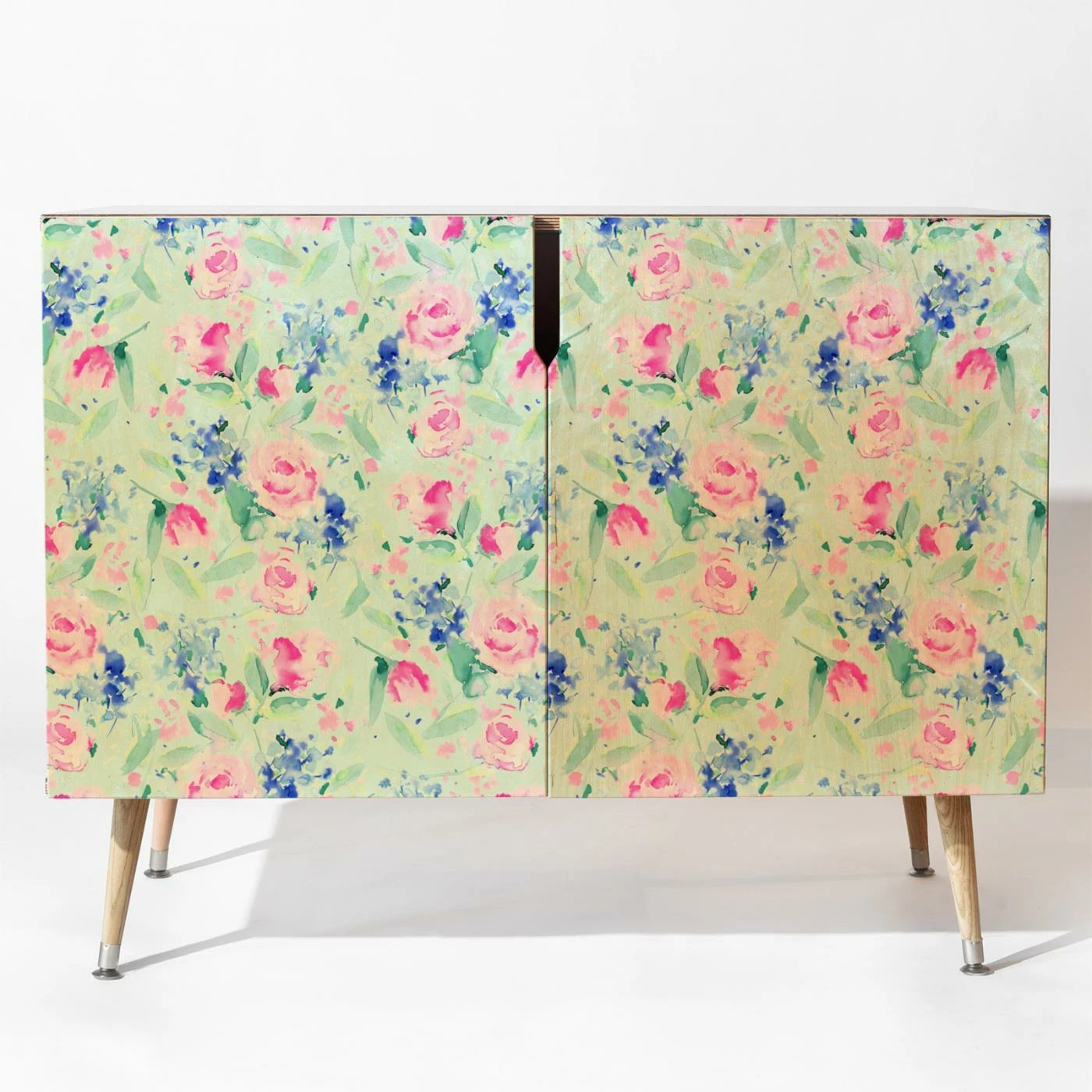 Dainty pink and blue flowers are scattered across the Deny Designs Jacqueline Maldonado Scattered Lovers Mint Credenza, creating a charming and romantic look for your hallway or living space. This whimsical credenza is accented with your choice of available leg style and includes an interior shelf. You’ll get easy maintenance and care by just wiping it clean with a non-abrasive cloth.