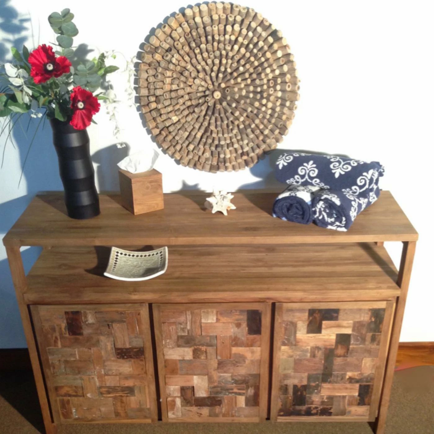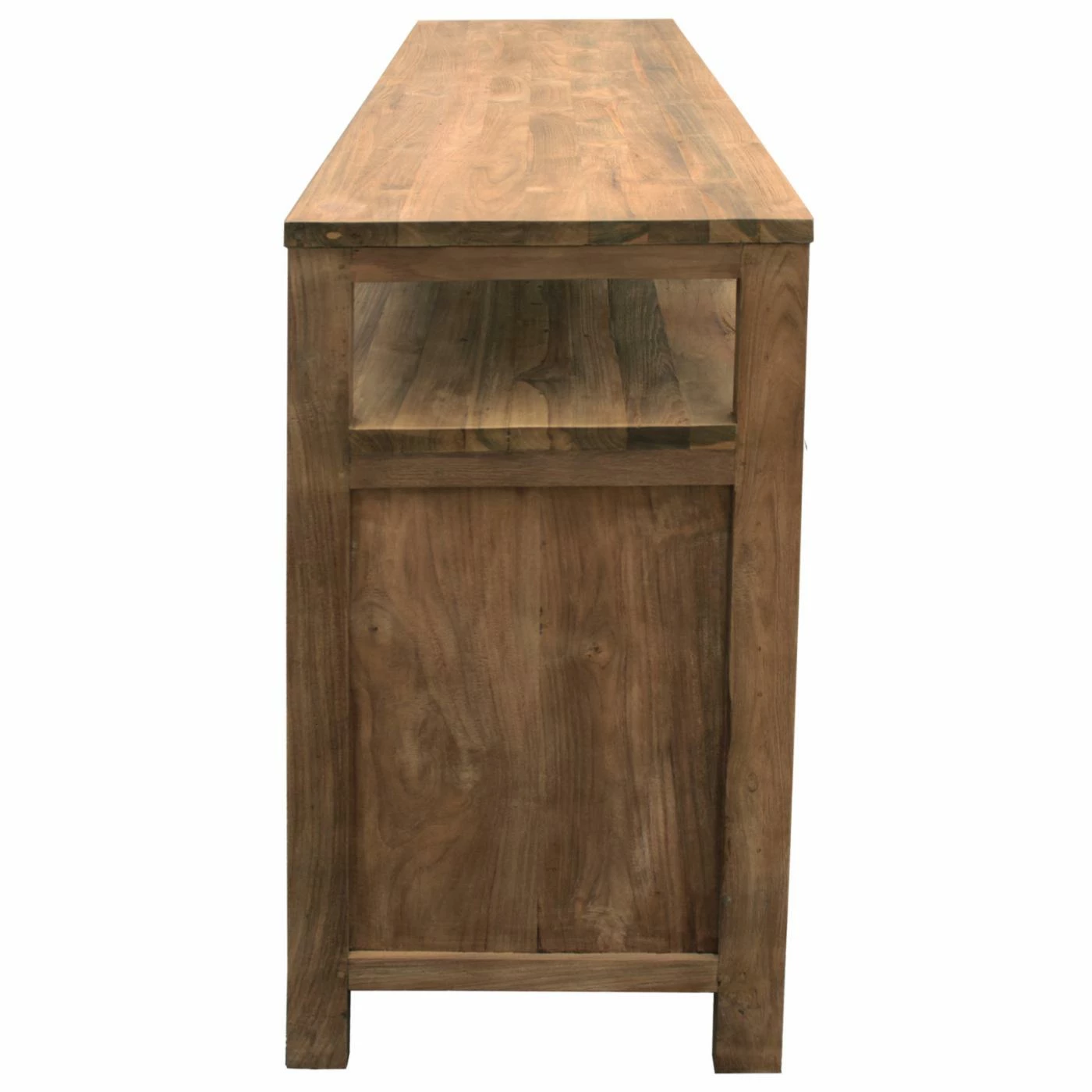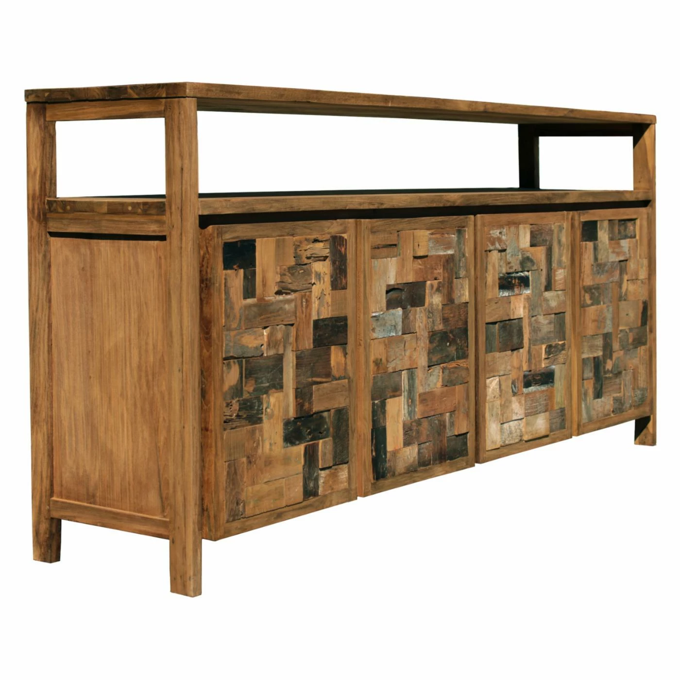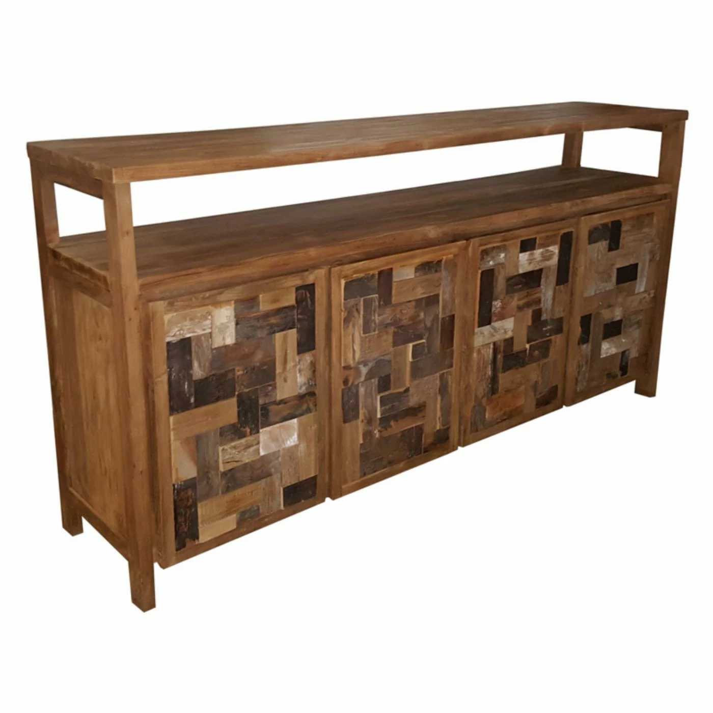 The Chic Teak Mozaik Recycled Teak Buffet is built from teak that has been taken from old houses, bridges, and agricultural buildings all around the island of Java near Indonesia. This reclaimed hardwood has withstood time and the elements, and now it’s ready for your house. This dense material is crafted into a wide console with an open storage area and more storage behind a pair of doors. Each door has an inset mosaic of reclaimed teak pieces that show off a rich selection of colors and textures. The interior is divided with a central shelf, making it ideal for storing serving pieces of audio-visual equipment. It’s also offered in multiple sizes to fit any space.