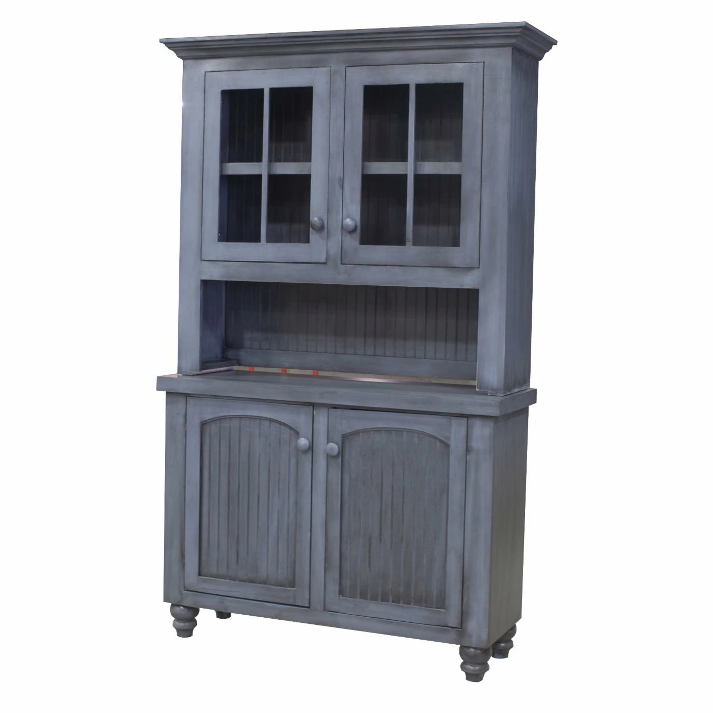 This Eagle Furniture 52 in. Modern Country Buffet with Hutch is designed for your large farmhouse kitchen or country dining room. This buffet and its hutch are made of furniture-grade birch plywood in your choice of available finishes. The hutch features generous moldings, two window pane glass doors, and shelving within. The buffet has an open top, two arched bead board doors, and interior shelving. Bead board back paneling and turned bun feet give this buffet and hutch its modern farmhouse appeal.