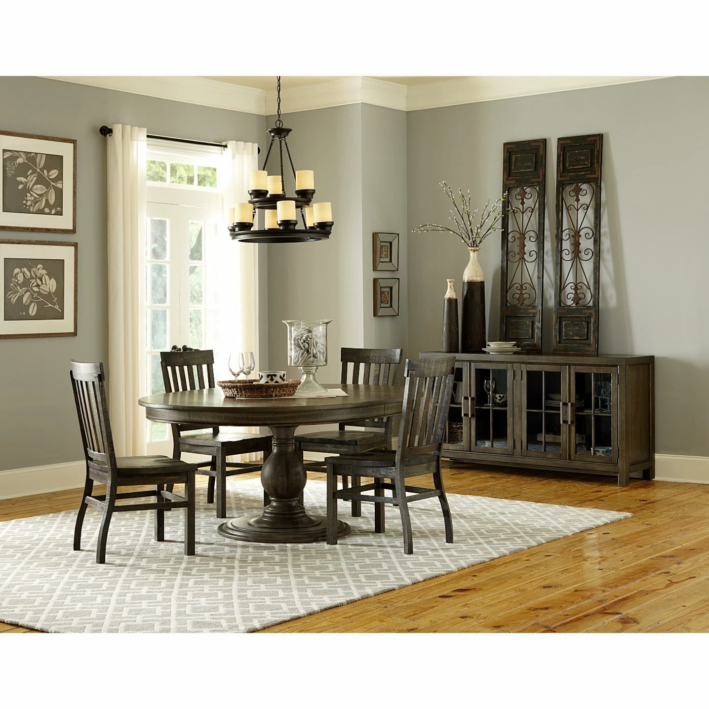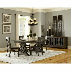 A rustic furnishing with rich contemporary appeal, the Magnussen Bellamy Dining Buffet brings authentic character and craftsmanship to dining room ensembles, highlighted by a deep weathered pine finish and antique brass bar pulls with a pewter overlay. Constructed from pine solids, this elegant display and storage piece holds two adjustable shelves behind its glass paned doors, and comes with levelers on its bases for easy and accurate positioning.