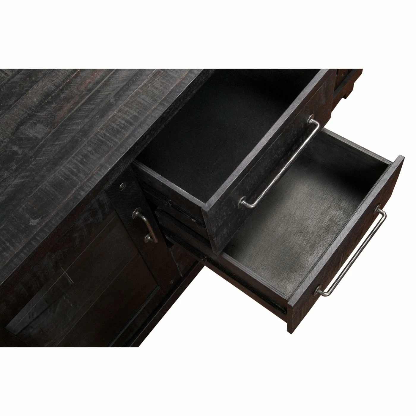 - 3 center drawers and 4 storage shelves