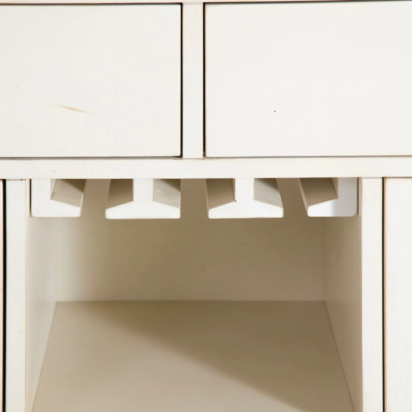 - 2 felt-lined drawers, stemware racks, X bottle storage