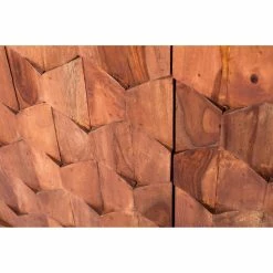 Angled and tapered legs set this Moe’s Home Collection O2 Sideboard squarely in the 60s, but its diamond wood pattern brings this sideboard into the modern age. You’ll love the designer touches and storage features found in this dining room essential. It features two decorative doors that open to reveal one shelf. Three side drawers with notched pulls offer even more storage. This sideboard is well-made of solid sheesham and engineered wood in a natural finish that lets the wood grain shine.