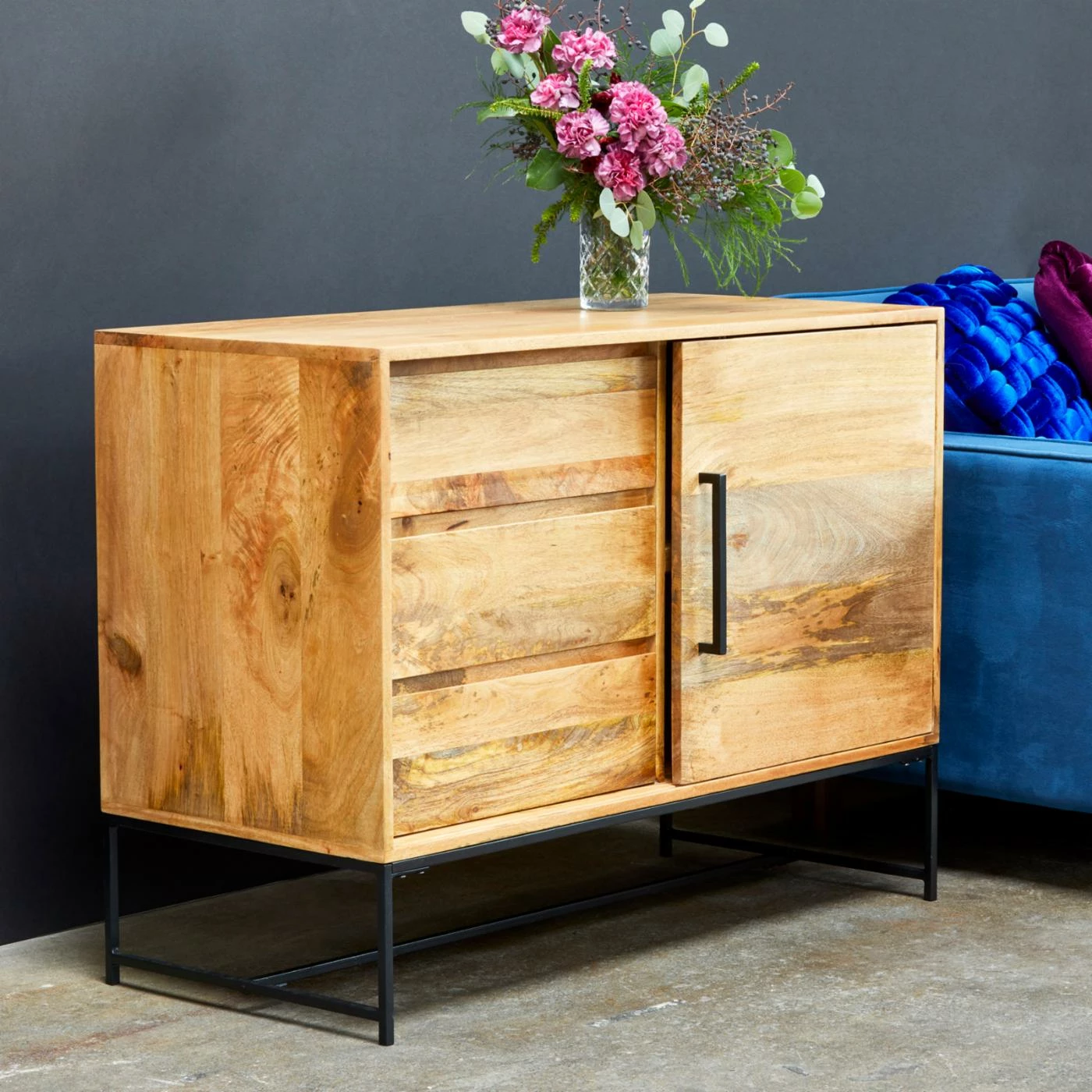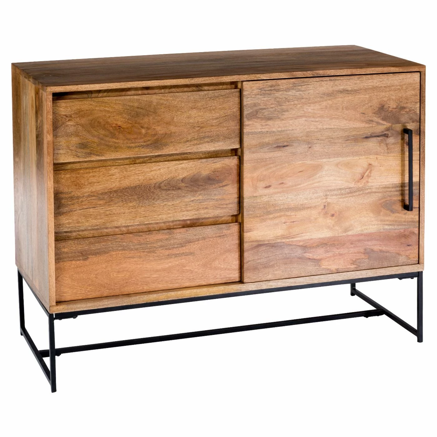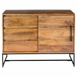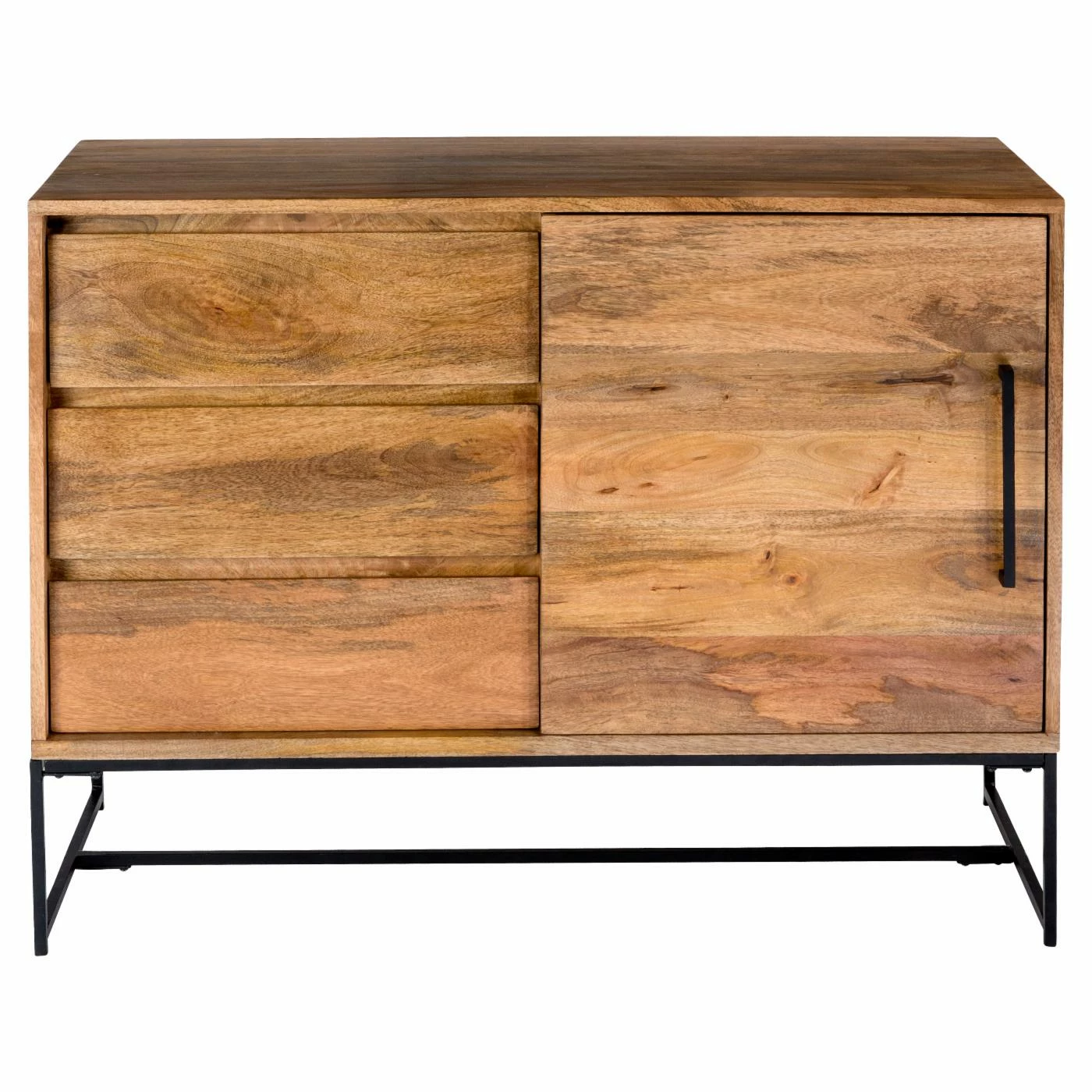 The Moe’s Home Collection Colvin Sideboard beautifully combines sleek, modern design with charming rustic elements to create a functional piece for your kitchen. Made of solid mango wood with iron accents and legs, this contemporary piece boasts plentiful storage space with three drawers and one spacious cabinet for all of your kitchen essentials.