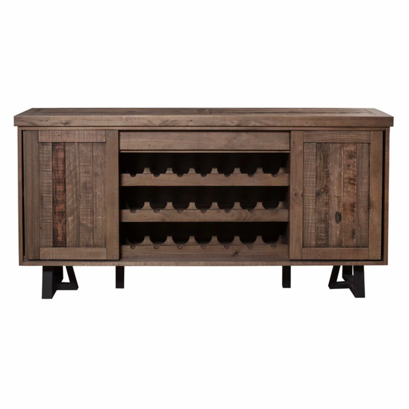 Once the party is over, the sideboard remains an essential piece for your dining area. With room for 21 wine bottles, this sideboard attractively displays your full collection of reds and whites. The wine rack is bordered by two spacious cabinets with shelves and sliding doors to hide away all the accessories from your dinner party until you’re ready to host again. As an added bonus, with its two-tone finish and black base and its reclaimed natural finish, this sideboard is a match for any rustic dΓ©cor.