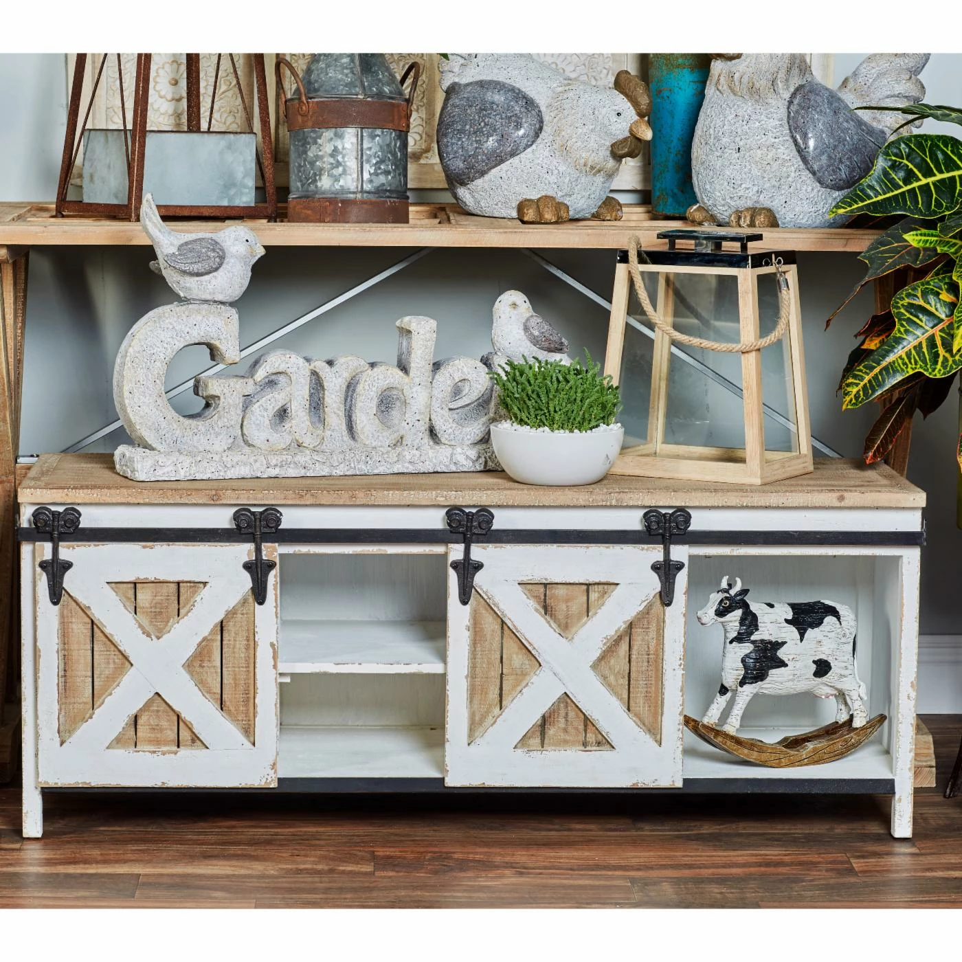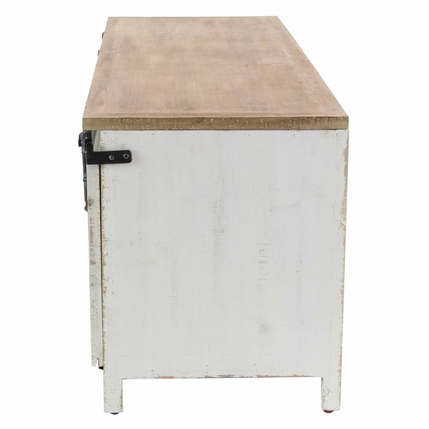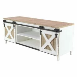 - Features a slide door cabinet made of fir wood, pine wood, and iron materials