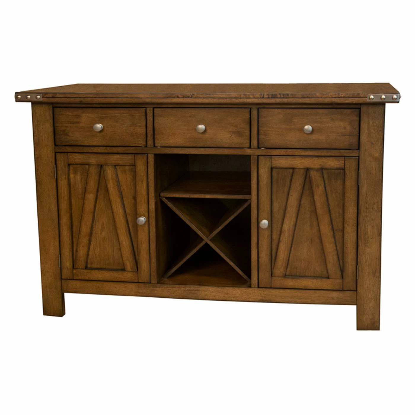 The A-America Eastwood Dining Buffet makes the perfect addition to your transitional dining room. Made from durable rubberwood, this piece has a rich tobacco finish that fits seamlessly with existing dΓ©cor. This dining buffet features three felt-lined drawers and an adjustable shelf behind each cabinet door, giving you plenty of storage options. A removable wine rack sits between the two cupboards.