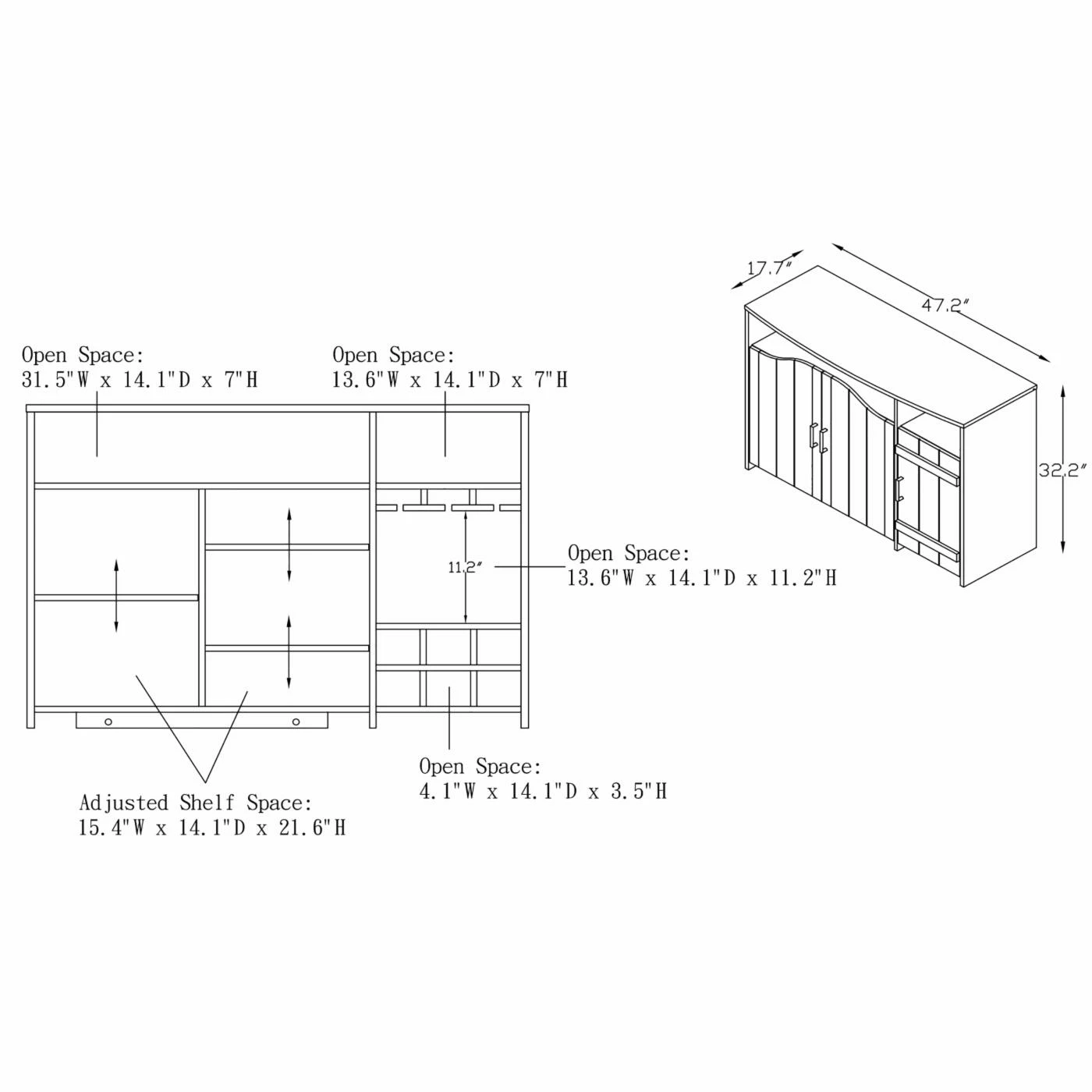 - Measures 47.2W x 17.7D x 32.3H