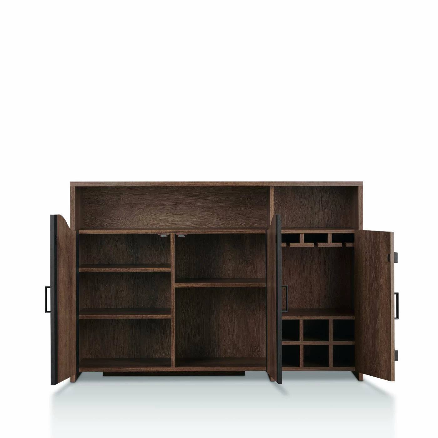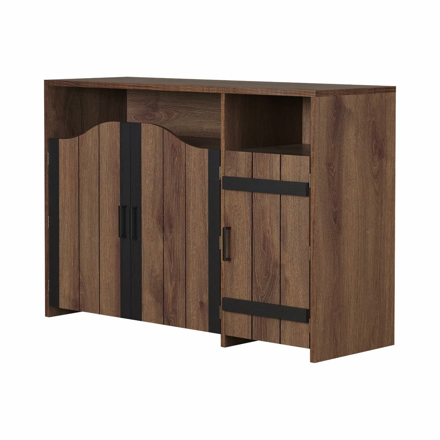 - Distressed walnut, black finish