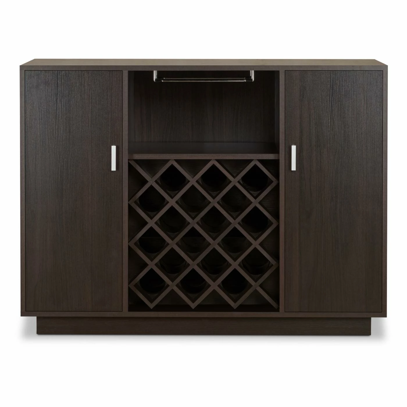 The Acme Furniture Hazen Server stores your entertainment essentials in one convenient place. Durably constructed of engineered wood, this server boasts a rich espresso finish. It features two side cabinets, each with an interior shelf. The wine rack holds 18 bottles and the stemware rack holds six glasses. This server is a functional, modern way to store dinnerware, table linens, and more.