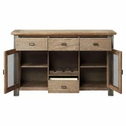 Make your dining room the centerpiece of your home with the Acme Furniture Nathaniel Dining Buffet Server. This unique server features neutral wood finish that is elegant and inviting. This beautiful two-tone server features glass doors, four shelves and four drawers providing plenty of storage and display options. This server is a welcome addition to any dining area.