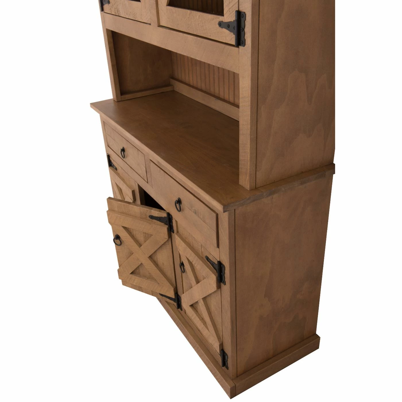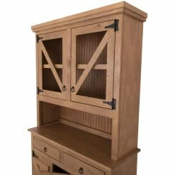 Make sure your new country-style kitchen or dining room have a wealth of storage with the Eagle Furniture Farm House 3 Door Dining Buffet with Optional Hutch. Two deep drawers and three cabinets let you organize every plate, saucer, platter, and spoon. The buffet’s frame is crafted from solid pine and features classic country-style slats including barn-door-style planks on the doors. Riveted iron hardware outfits the piece. Choose among available colors. A double-door cabinet hutch top is offered to matched, giving you even more storage space with which to work (Hutch Dimensions: 47.25W x 14.25D x 45H in.)